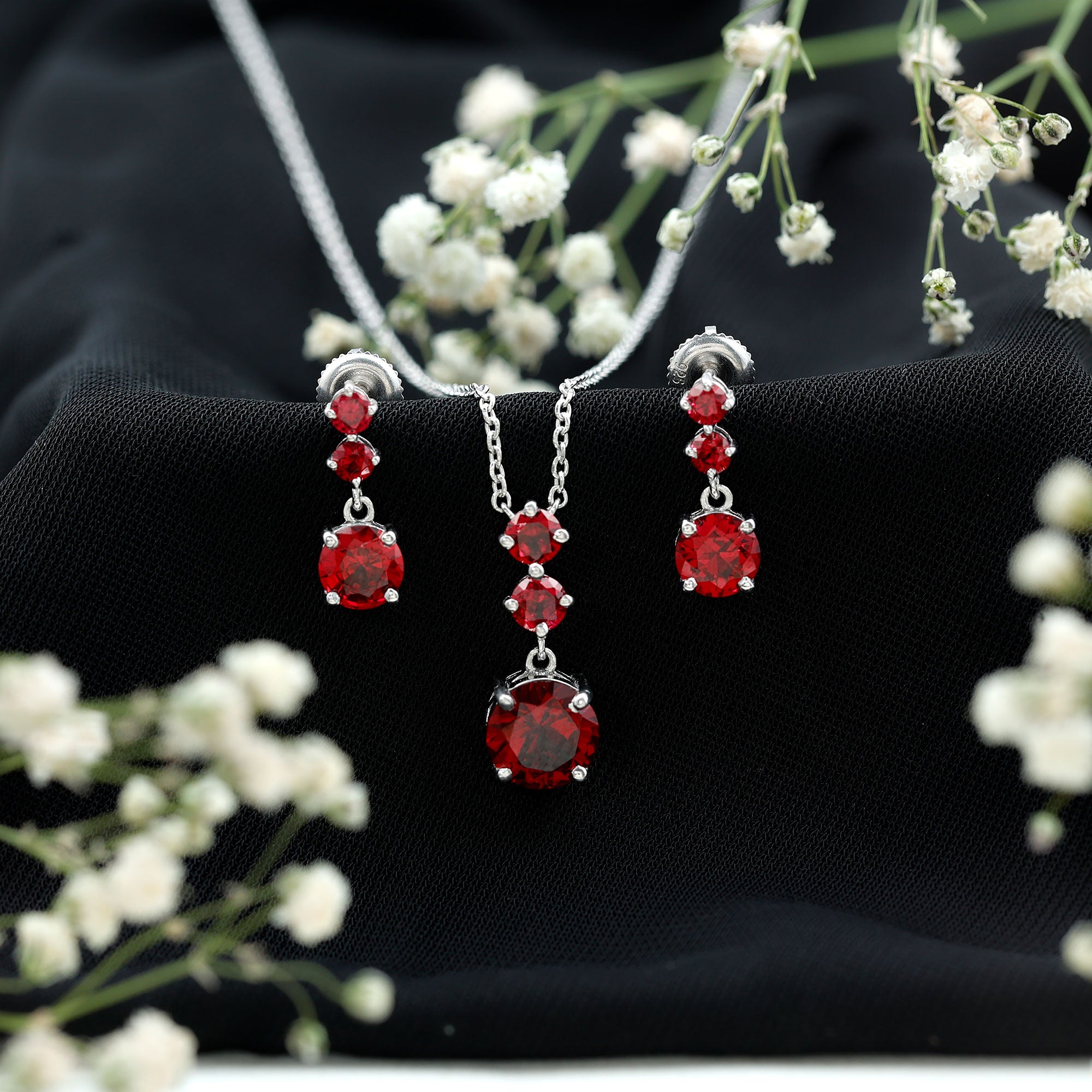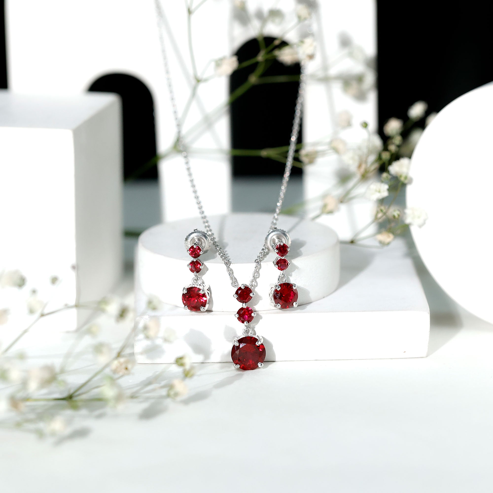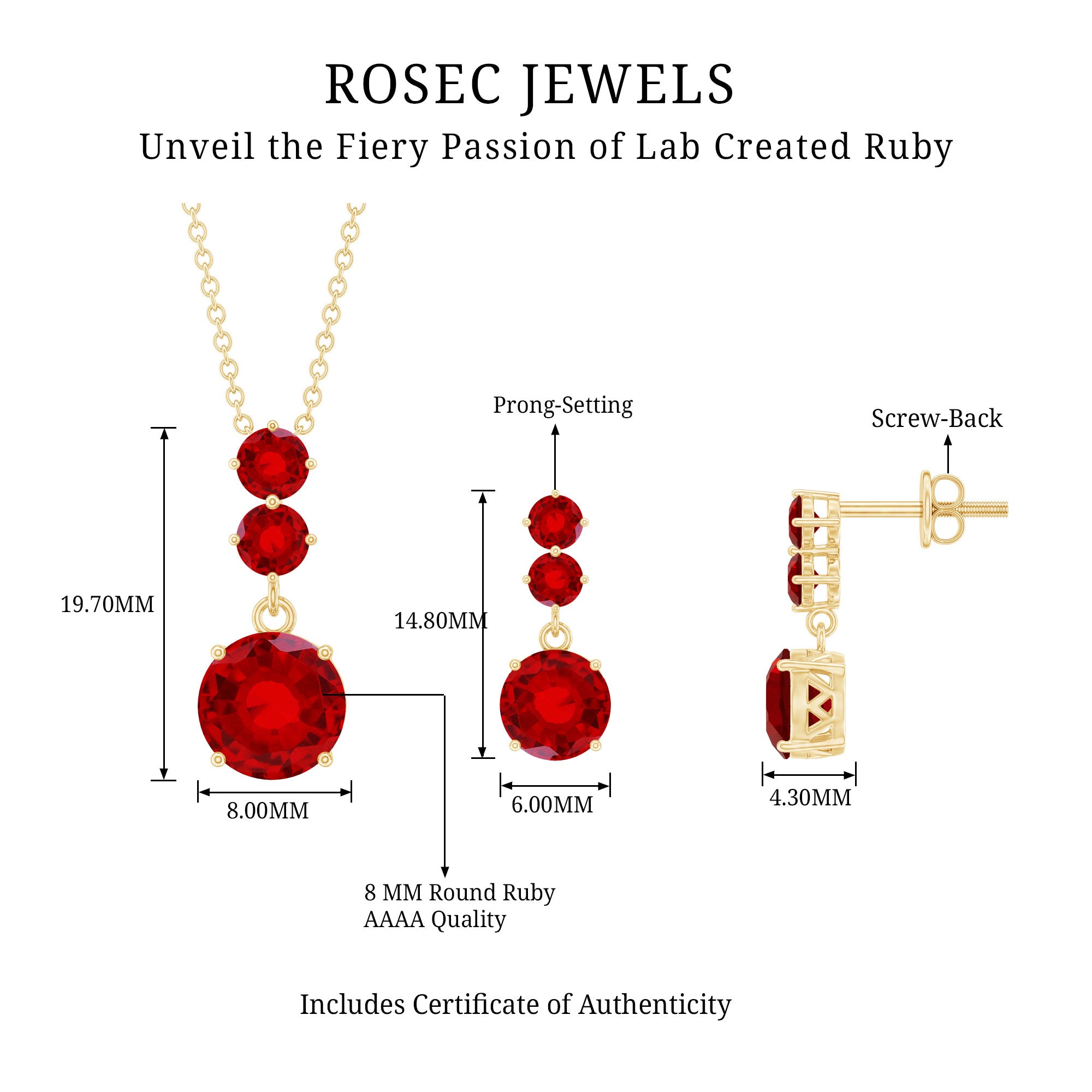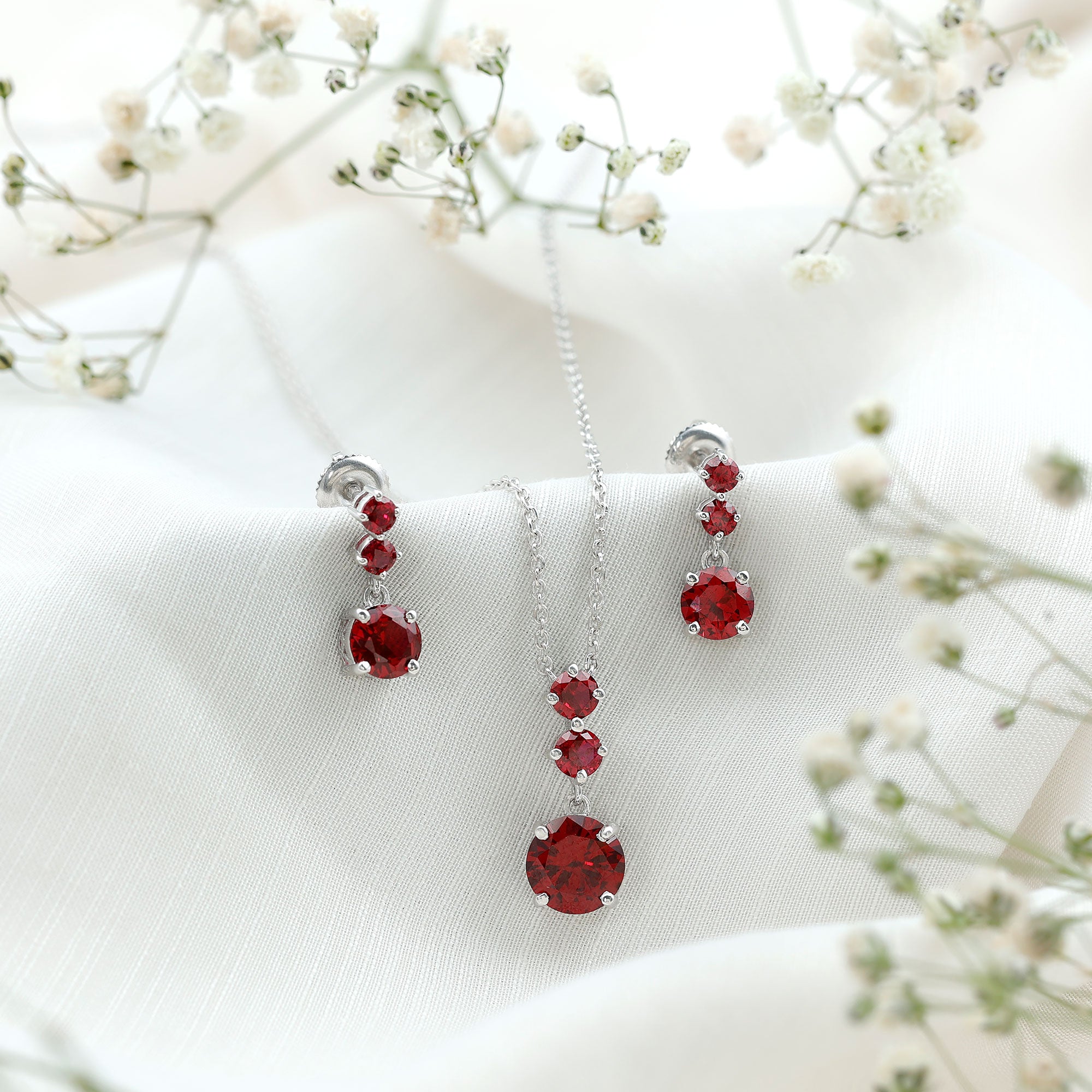 Lab-Created Ruby Three Stone Dangle Jewelry Set