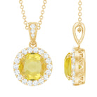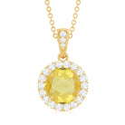Lab-Created Yellow Sapphire Halo Pendant with Diamond