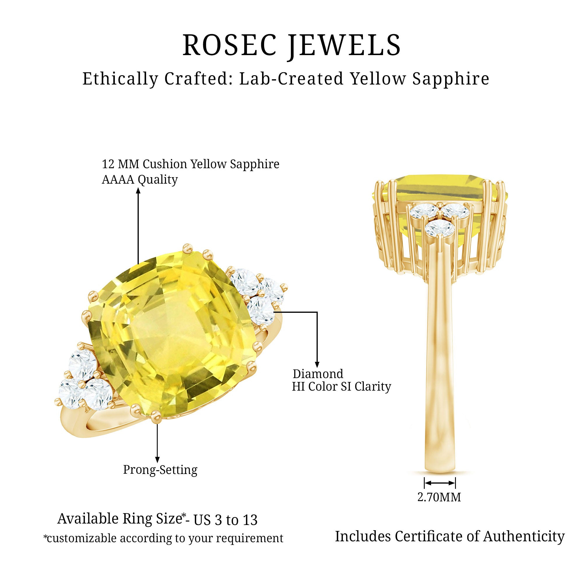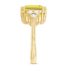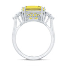 Simple yet elegant, the Solitaire Engagement Ring is embellished with Cushion Cut Lab Created Yellow Sapphire secured by Prong Setting while Round Diamond Trio is studded on either side of the center stone. On your special day, this Created Sapphire Ring will captivate everyones attention towards her. Get this striking Solitaire Ring for her as a birthday gift.