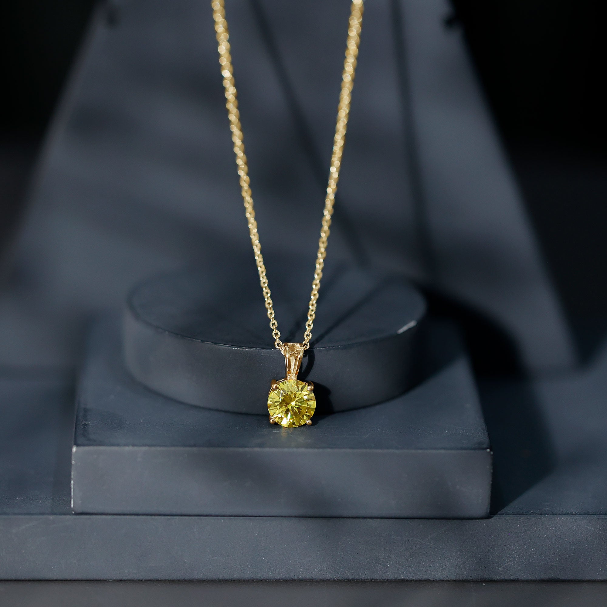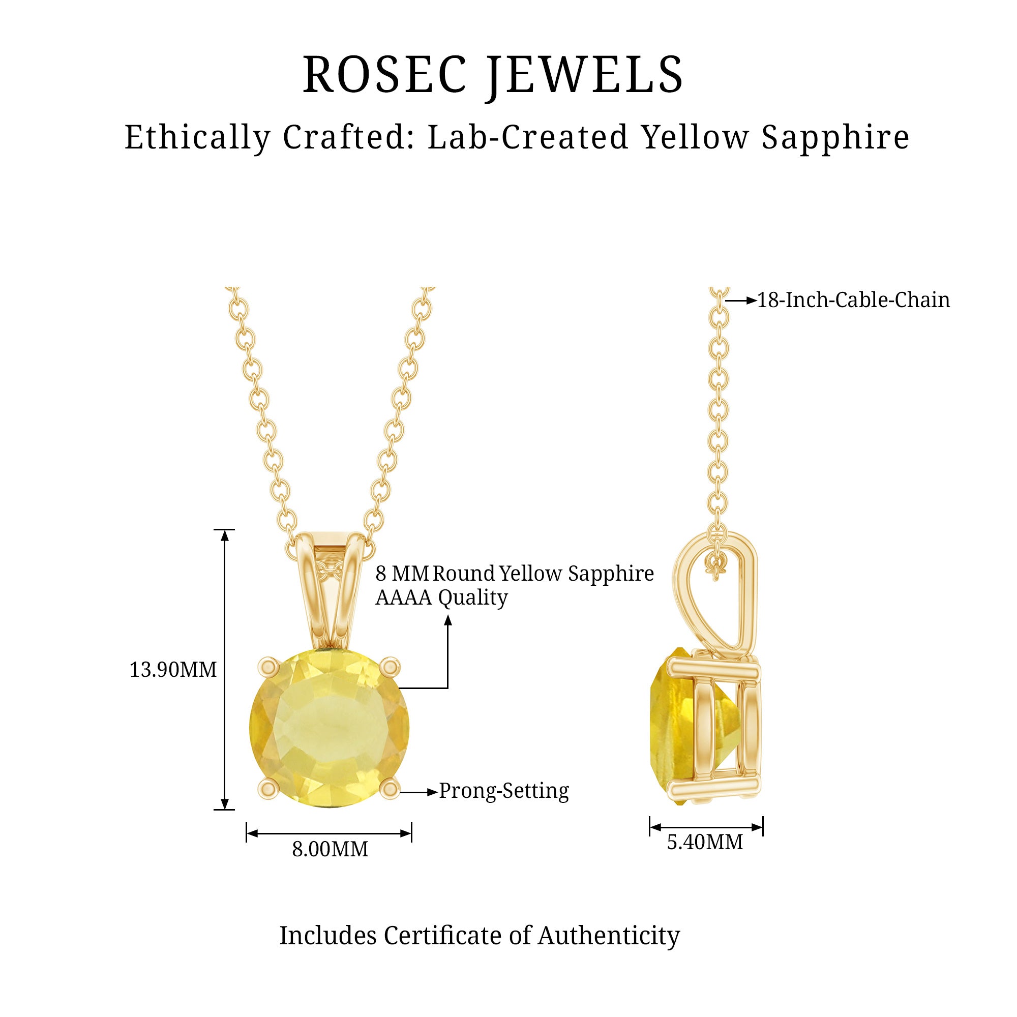 Lab Grown 8 MM Yellow Sapphire Solitaire Pendant with Chain