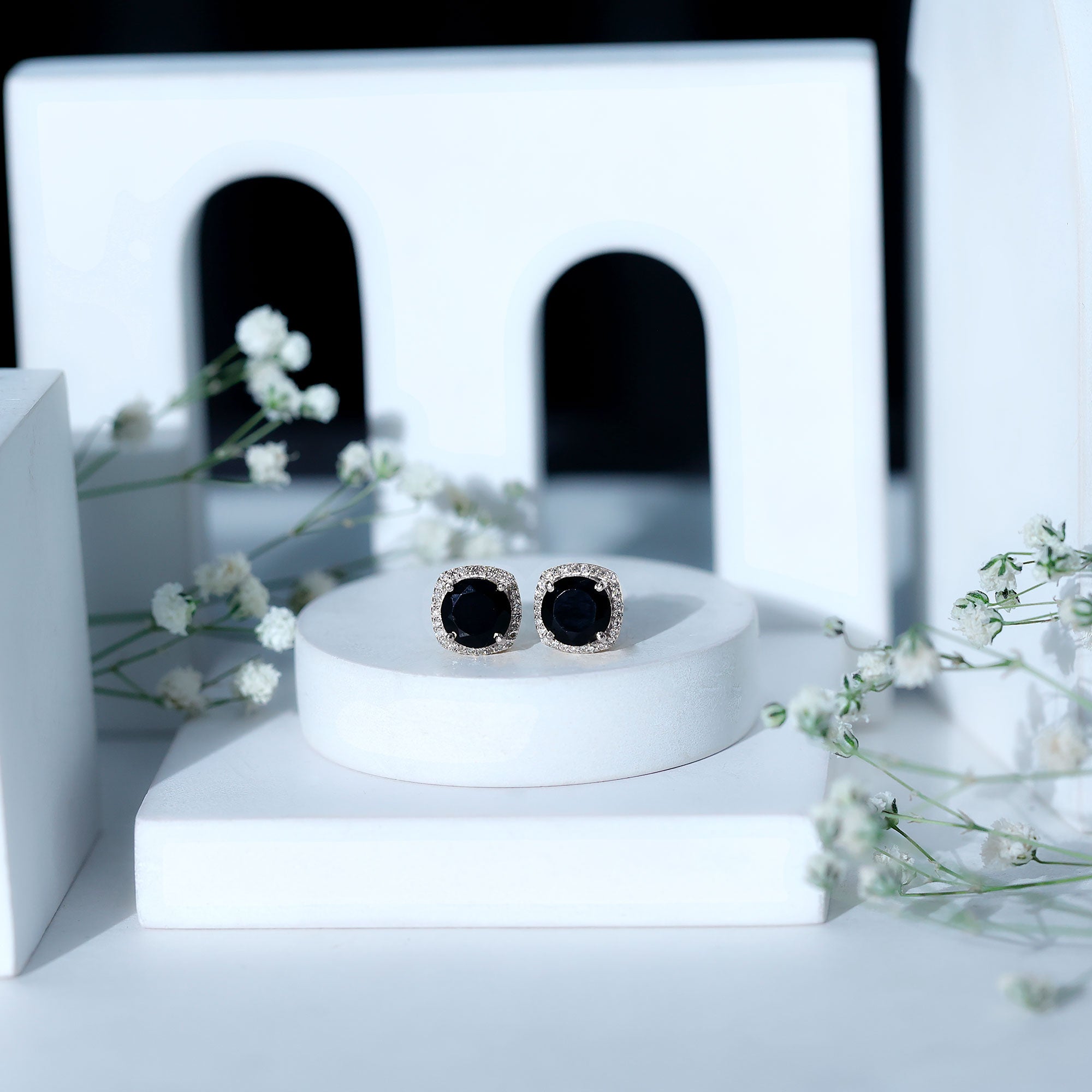Drawing inspiration from the timeless elegance of classic jewelry, these Black and White Diamond Earrings offer a perfect blend of sophistication and sparkle. Each earring features a 6 MM round shaped lab created black diamond, securely set in prong setting at the center. Surrounding the black diamond is a halo of round shaped white diamonds, creating a brilliant contrast that catches the light beautifully from every angle. The design of these Halo Stud Earrings combines modern style with a touch of classic glamour, making them versatile enough for both everyday wear and special occasions. The striking contrast between the AAAA quality lab made black diamond center stone and the shimmering HI-SI quality white diamonds adds a bold yet elegant statement, highlighting the wearer’s unique sense of style. Crafted with attention to detail, these Lab Created Black Diamond Earrings are designed to stay secure and comfortable with a screw-back closure, ensuring they remain safely in place throughout the day. With their striking design and secure fit, these Black Diamond Stud Earrings are a beautiful addition to any jewelry collection, offering both style and confidence to the wearer.
