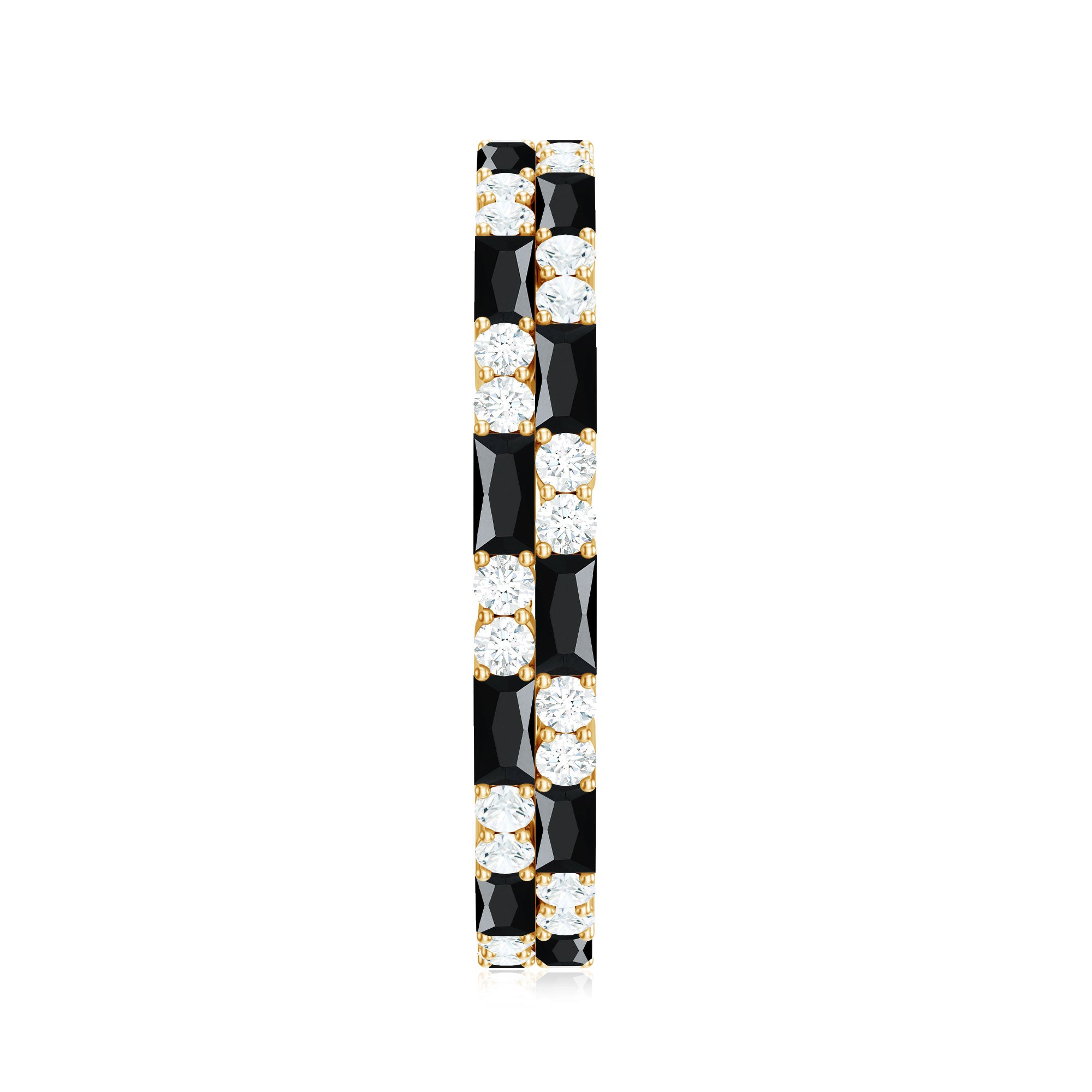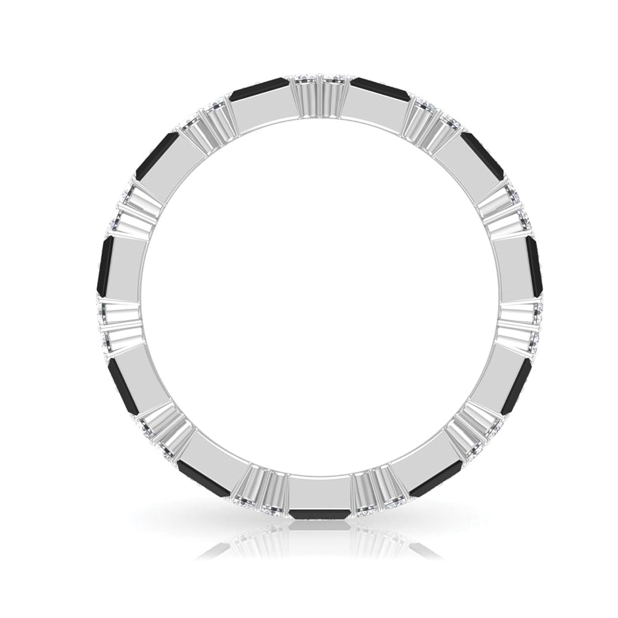 Experience the pinnacle of love with this exquisitely elegant Eternity Ring, adorned with mesmerizing Baguette Shape Lab Created Black Diamond and scintillating Round Shape Diamond stones, all delicately set in a prong setting. This Full Eternity Ring symbolizes everlasting affection and showcases a timeless beauty that will leave a lasting impression. Let your love shine brilliantly with this enchanting piece of jewelry, a true testament to your enduring devotion.