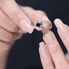 Lab Grown Black Diamond and Diamond Flower Bypass Ring