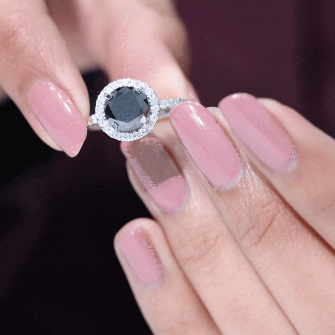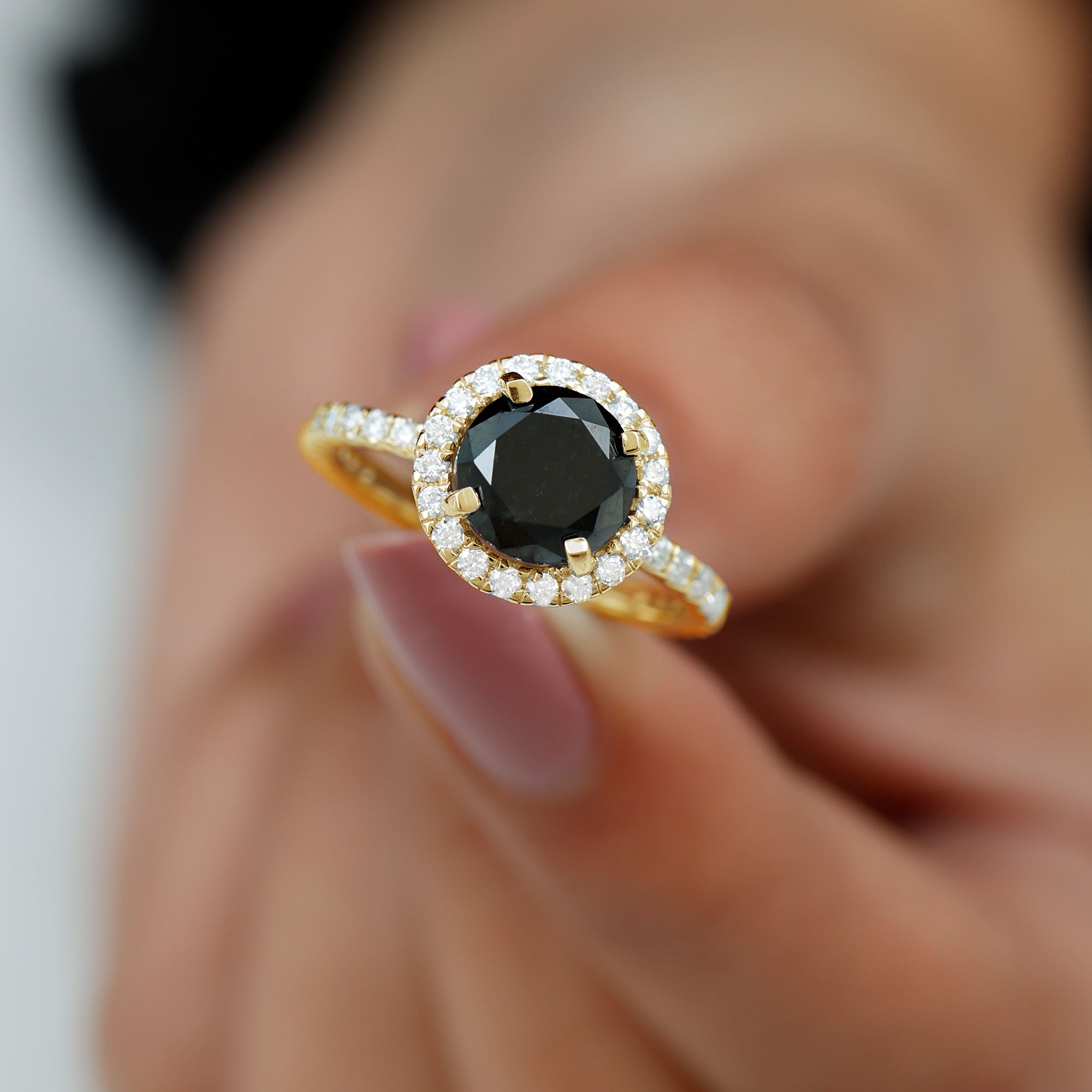 Lab Grown Black Diamond Classic Halo Engagement Ring with Diamond