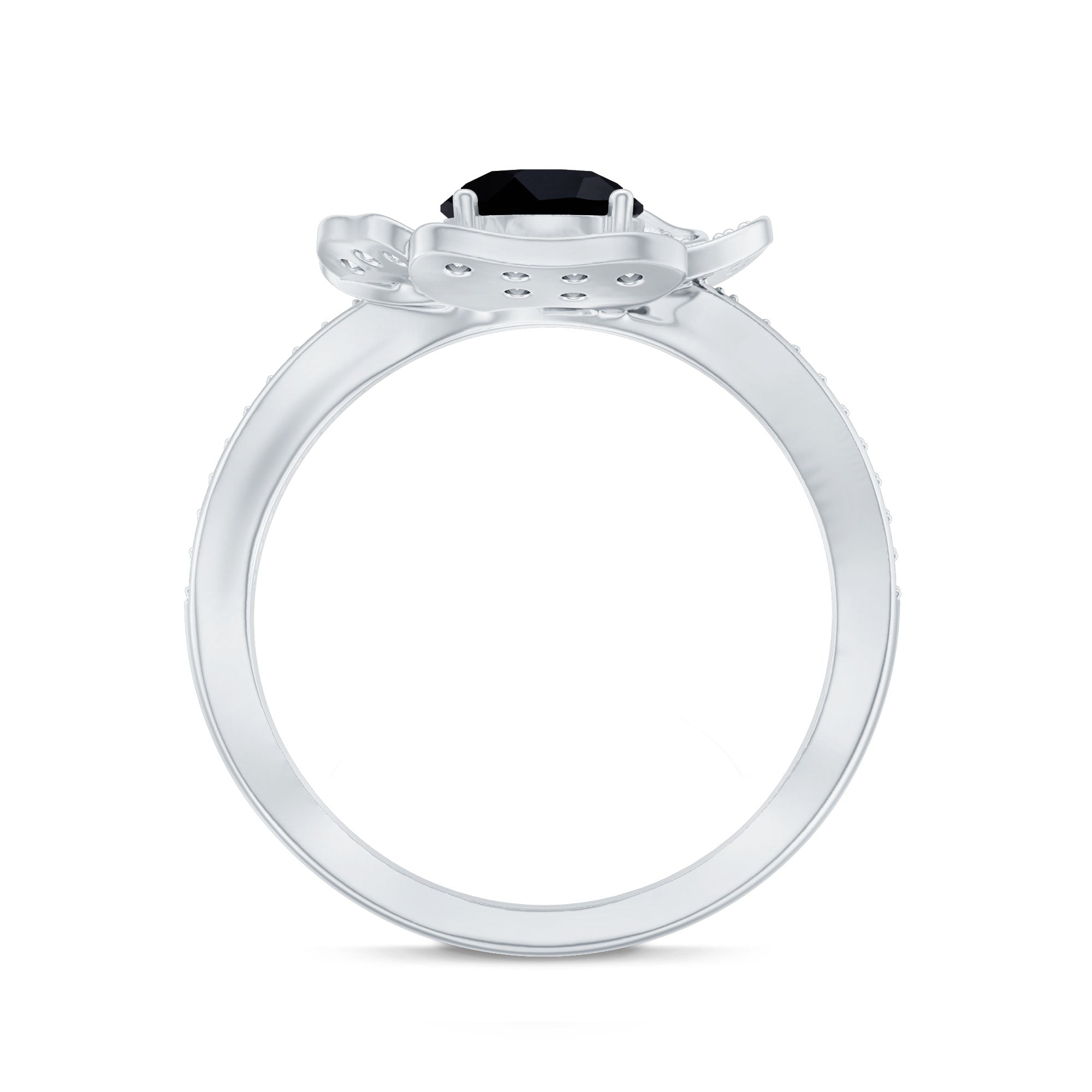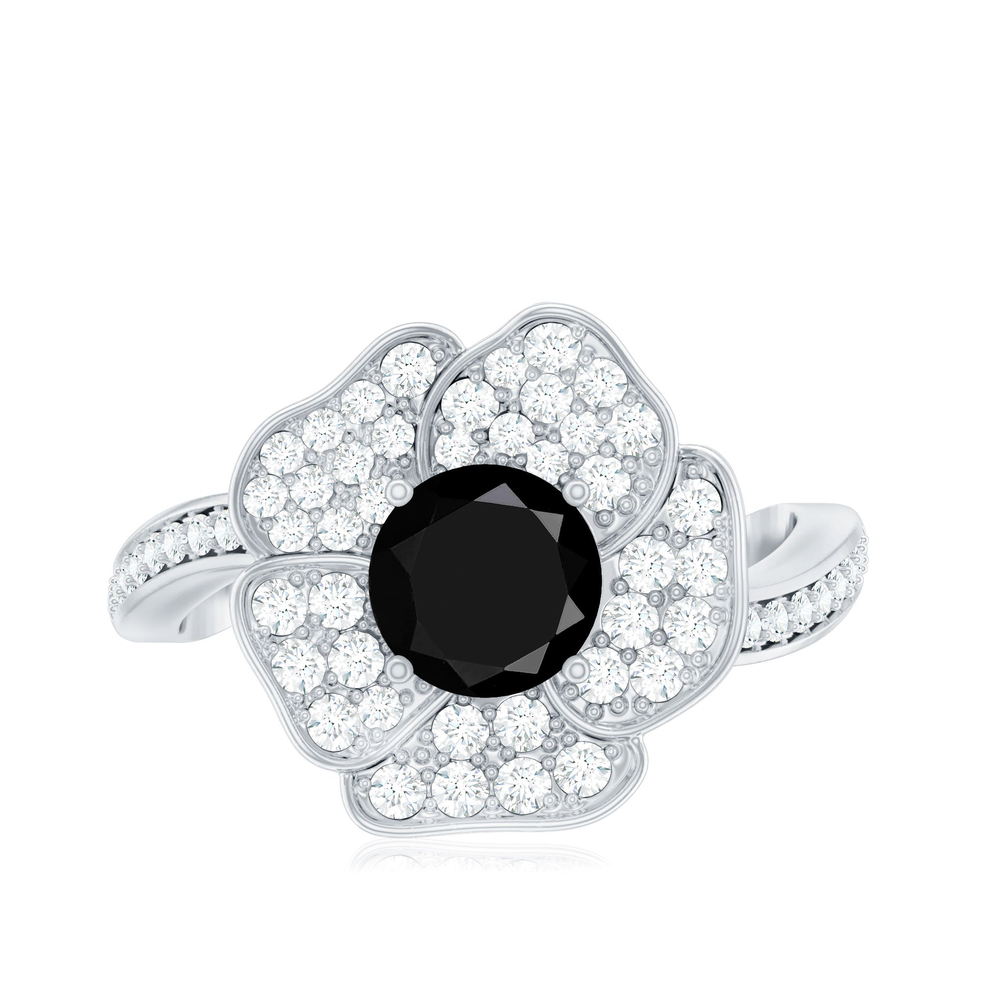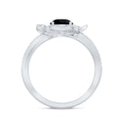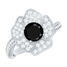 Lab Grown Black Diamond Flower Engagement Ring with Diamond Accent