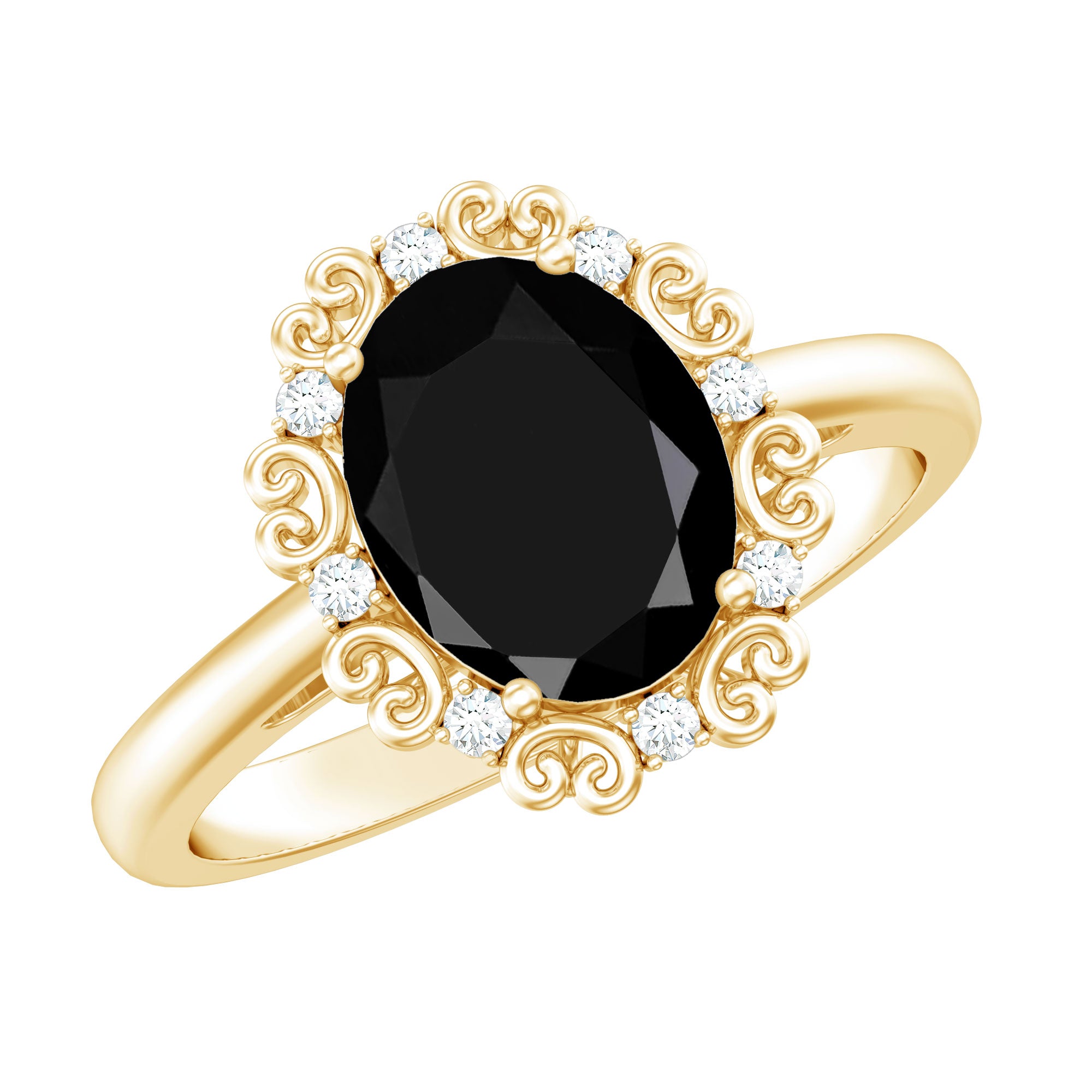Lab Grown Black Diamond Oval Engagement Ring with Diamond