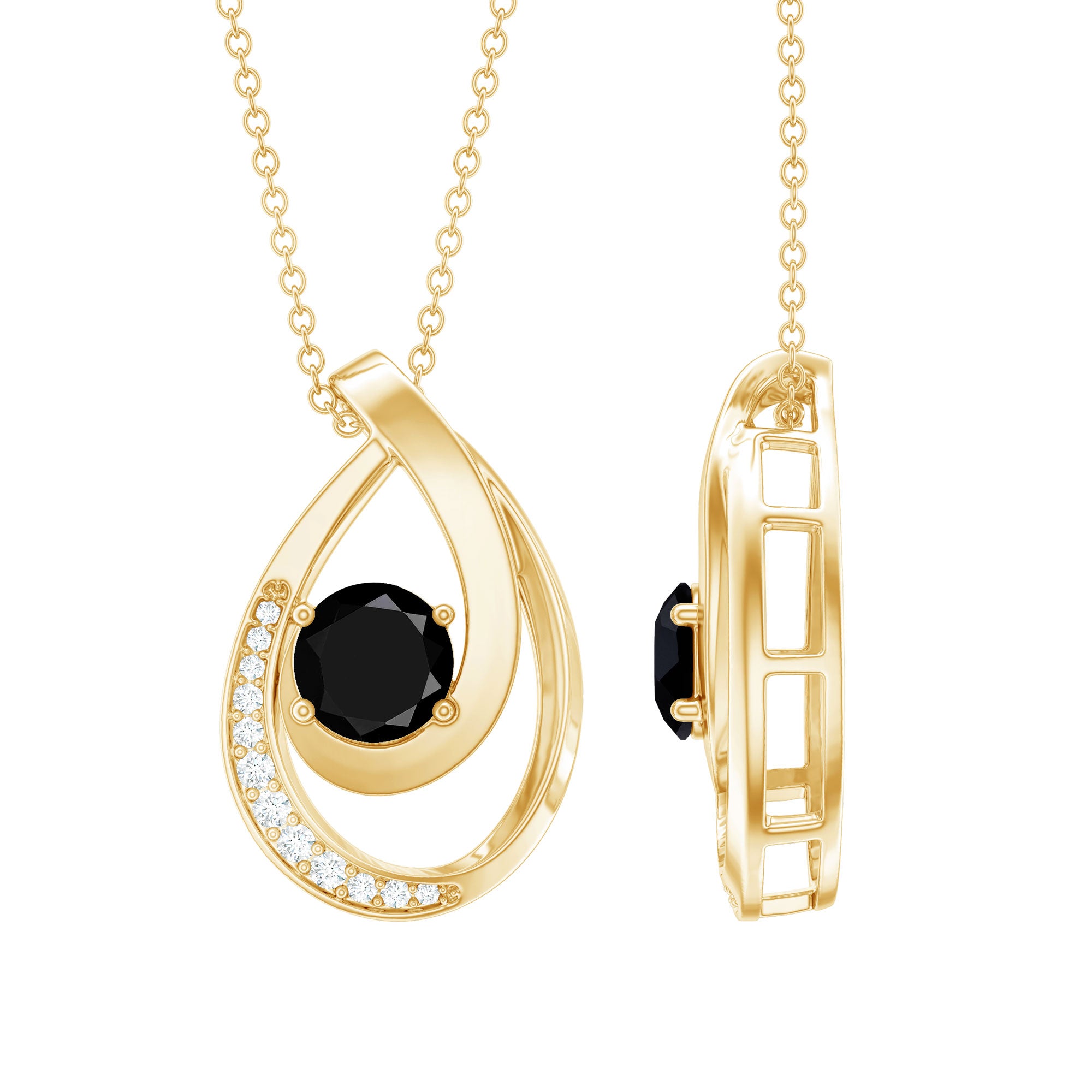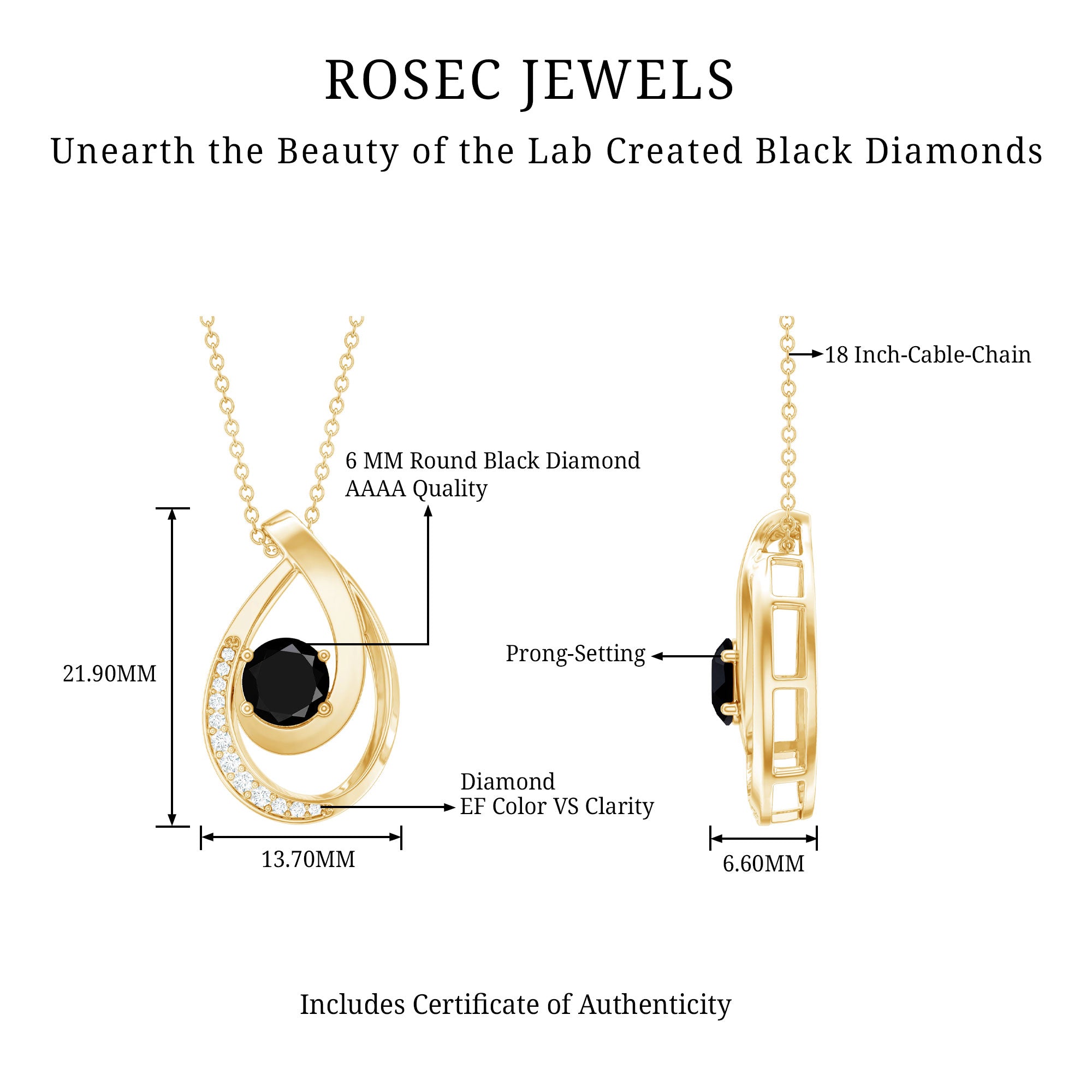 Captivate onlookers with this Teardrop Pendant Necklace, a mesmerizing blend of sophistication and modern elegance. The striking 6 mm Lab Created Black Diamond set as a centerpiece, accentuated by sparkling Lab Grown White Diamond gemstones, this Black Diamond Pendant (Lab Grown) radiates timeless beauty with Aaaa Quality Black Diamond and Ef-Vs Quality Diamonds. Rosec Jewels brings you a piece that transcends trends. Embrace the allure of a Black and White Diamond Pendant Necklace (Synthetic) and make a statement that resonates with grace.