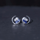 Lab Grown Blue Sapphire and Diamond Cat and Moon Stud Earrings