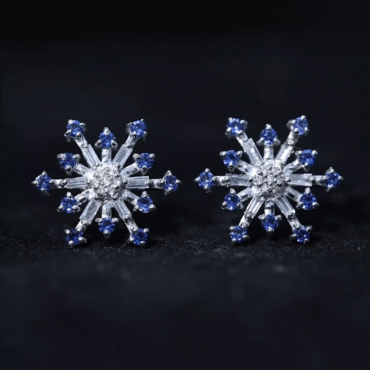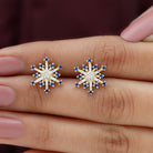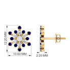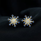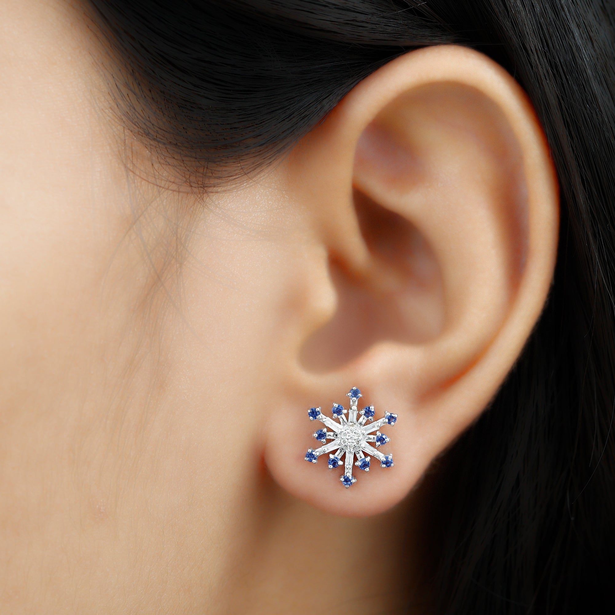 Lab Grown Blue Sapphire and Diamond Snowflake Stud Earrings