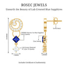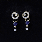 Add a touch of timeless elegance to your bridal look with these stunning Lab Created Blue Sapphire Dangle Earrings. Thoughtfully designed and ethically handcrafted in 14k yellow gold plated silver, these Dangle Drop Earrings are made using sustainable, lab grown gemstones, a choice that is both beautiful and kind to the planet. At the top, a graceful spiral design is encrusted with sparkling round lab grown diamonds, adding brilliance and a modern twist to this classic form. Hanging below is a 4 MM princess cut lab created blue sapphire, perfectly set in prong setting. Dangling from the sapphire is a single round lab grown diamond, adding just the right amount of movement and extra sparkle. The Blue Sapphire and Diamond Earrings are secured with screw back closures, offering both comfort and peace of mind, ideal for long celebrations or special moments. The AAAA quality lab created blue sapphire and EF-VS quality lab grown diamonds ensure that every detail of these Wedding Drop Earrings shines with premium brilliance and refined elegance. Whether worn on your wedding day, a milestone event, or simply to feel extra special, these Bridal Earrings are a celebration of style, love, and sustainability.