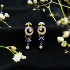 Lab Grown Blue Sapphire and Diamond Wedding Dangle Earrings