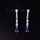 These Lab Grown Sapphire Earrings are handcrafted with 14K White Gold Plated Silver for your special look. The earring features a 4X6 MM Pear Shape Created Sapphire linked with Marquise and Round Shape Moissanite. These Long Earrings hold the classic shine of AAAA Quality Synthetic Blue Sapphire and D-VS1 Quality Moissanite securely placed in Prong Setting. These Earrings with Screw on Backs stays on place throughout the day. These Drop Earrings will be delivered to you in a velvet pouch with a certificate of authenticity.