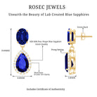 Lab Grown Blue Sapphire Bridal Dangle Earrings with Moissanite
