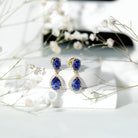 Mark your wedding day with our stunning Bridal Drop Earrings, which feature a 6X8MM pear shaped lab created blue sapphire set in prong setting, surrounded by sparkling moissanite halo. At the top, a 5X7MM oval shaped lab created blue sapphire adds extra elegance and a luxurious feel. The combination of the deep blue sapphires and sparkling moissanite creates a stunning contrast, making the Dangle Drop Earrings shine beautifully from every angle. These Teardrop Earrings are made with AAAA quality lab created blue sapphires and D-VS1 quality moissanites, ensuring bright, clear, and durable stones. They are ethical and eco-friendly, giving you the beauty of natural gemstones without any compromise. The elegant drop design makes them perfect for weddings, parties, or other special events. Simple yet luxurious, they are the kind of earrings that add sparkle and timeless elegance to every outfit. With their classic design and striking color, these Blue Sapphire Earrings are a perfect addition to any jewelry collection, symbolizing beauty and elegance.