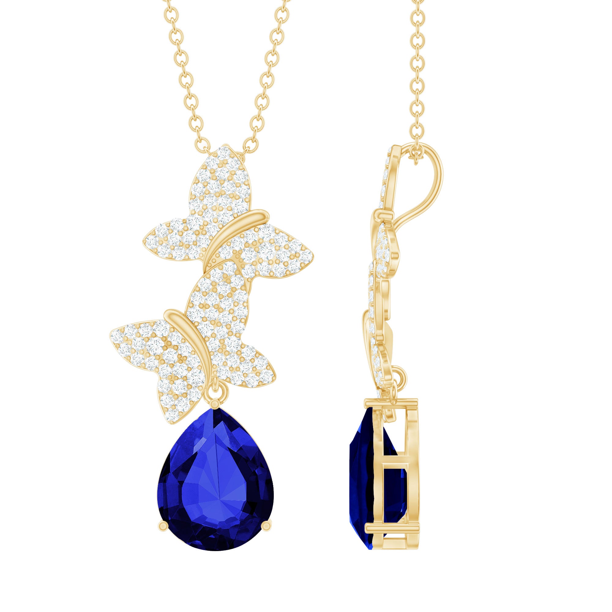 Lab Grown Blue Sapphire Butterflies Pendant Necklace with Diamond