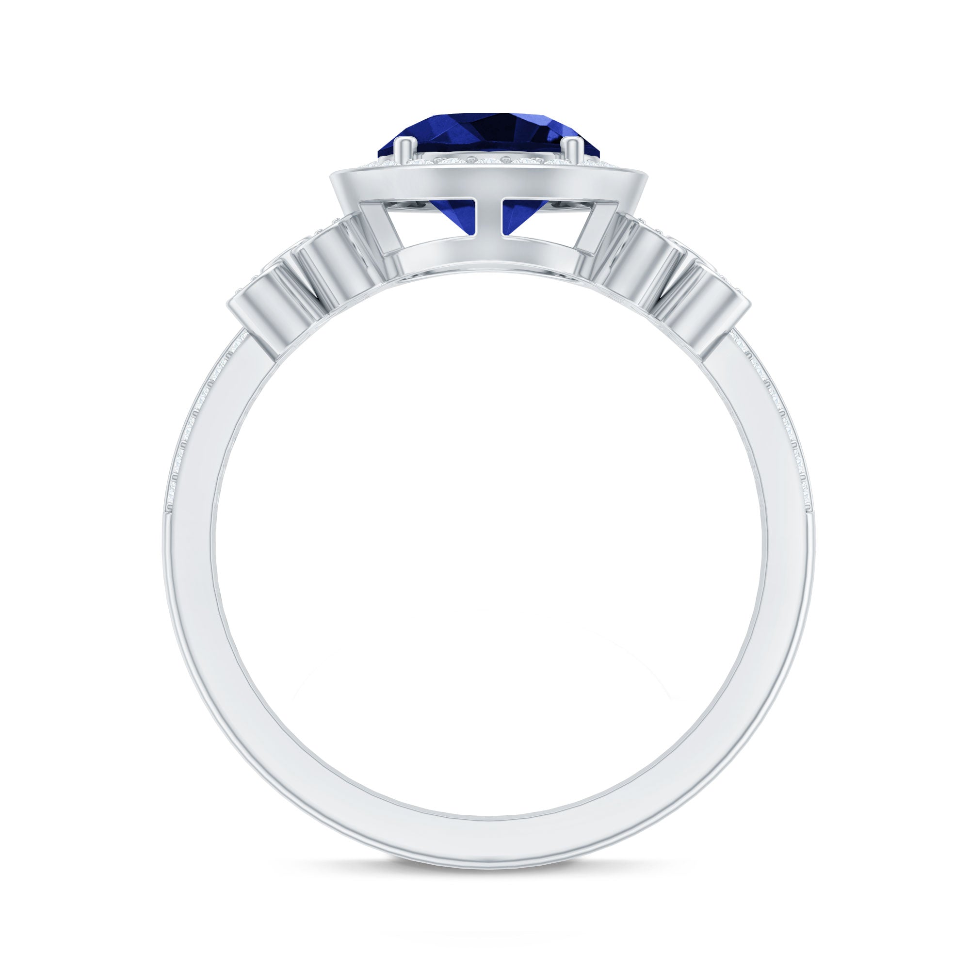 Lab Grown Blue Sapphire Circle Engagement Ring with Diamond Accent