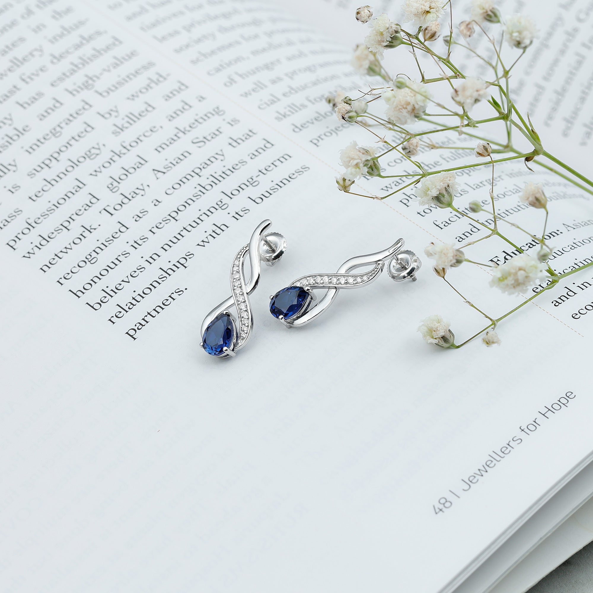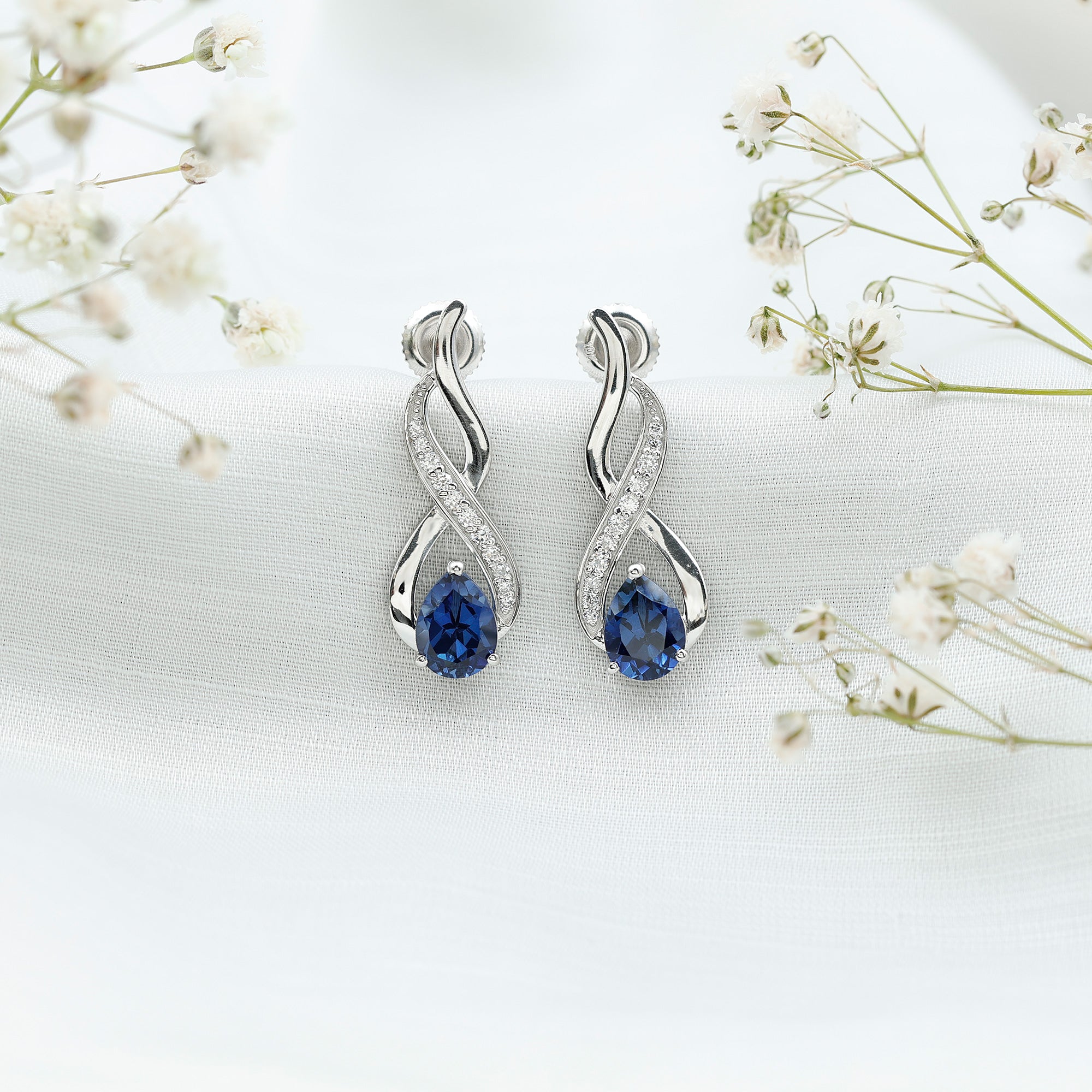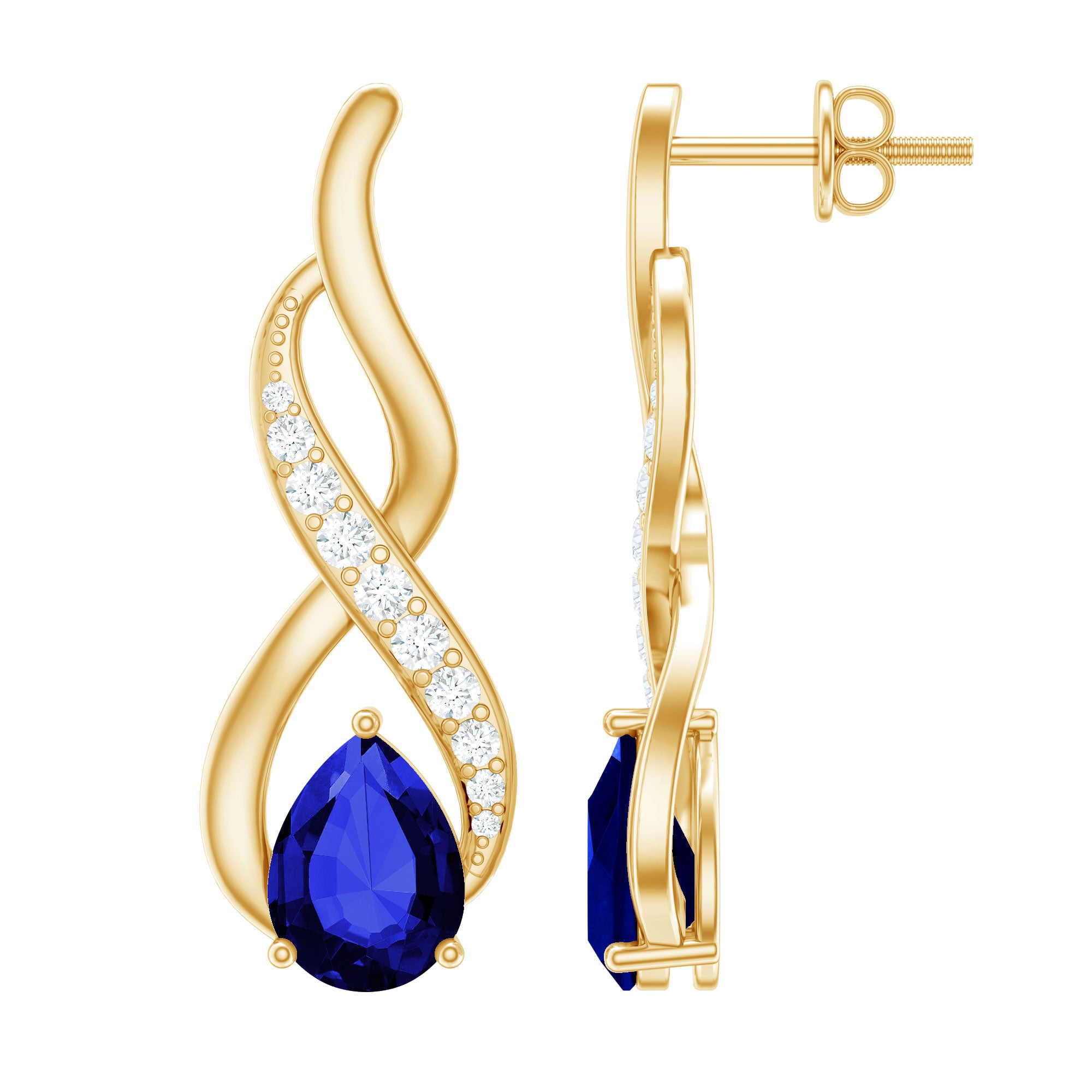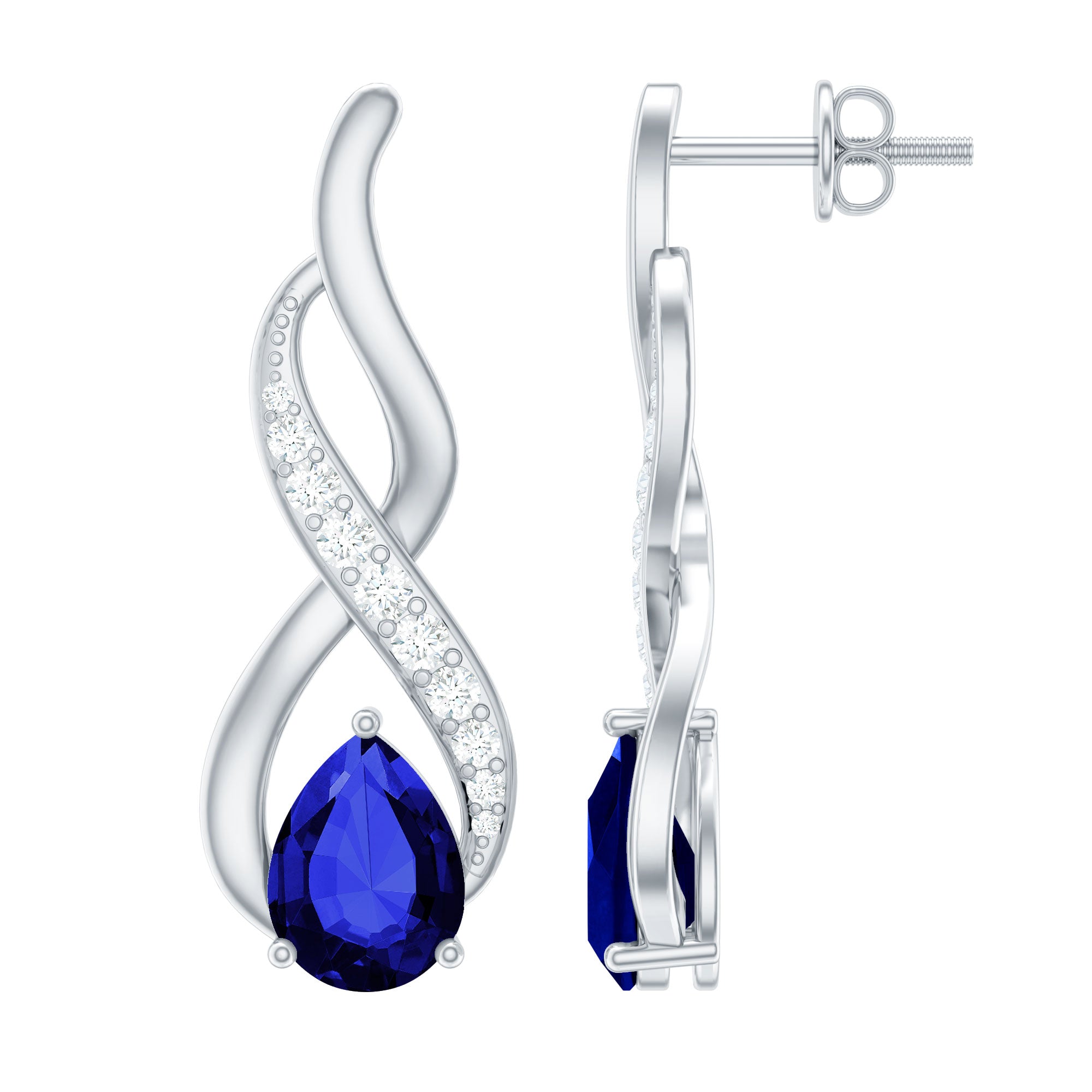 Lab Grown Blue Sapphire Infinity Drop Earrings with Diamond