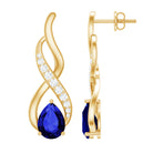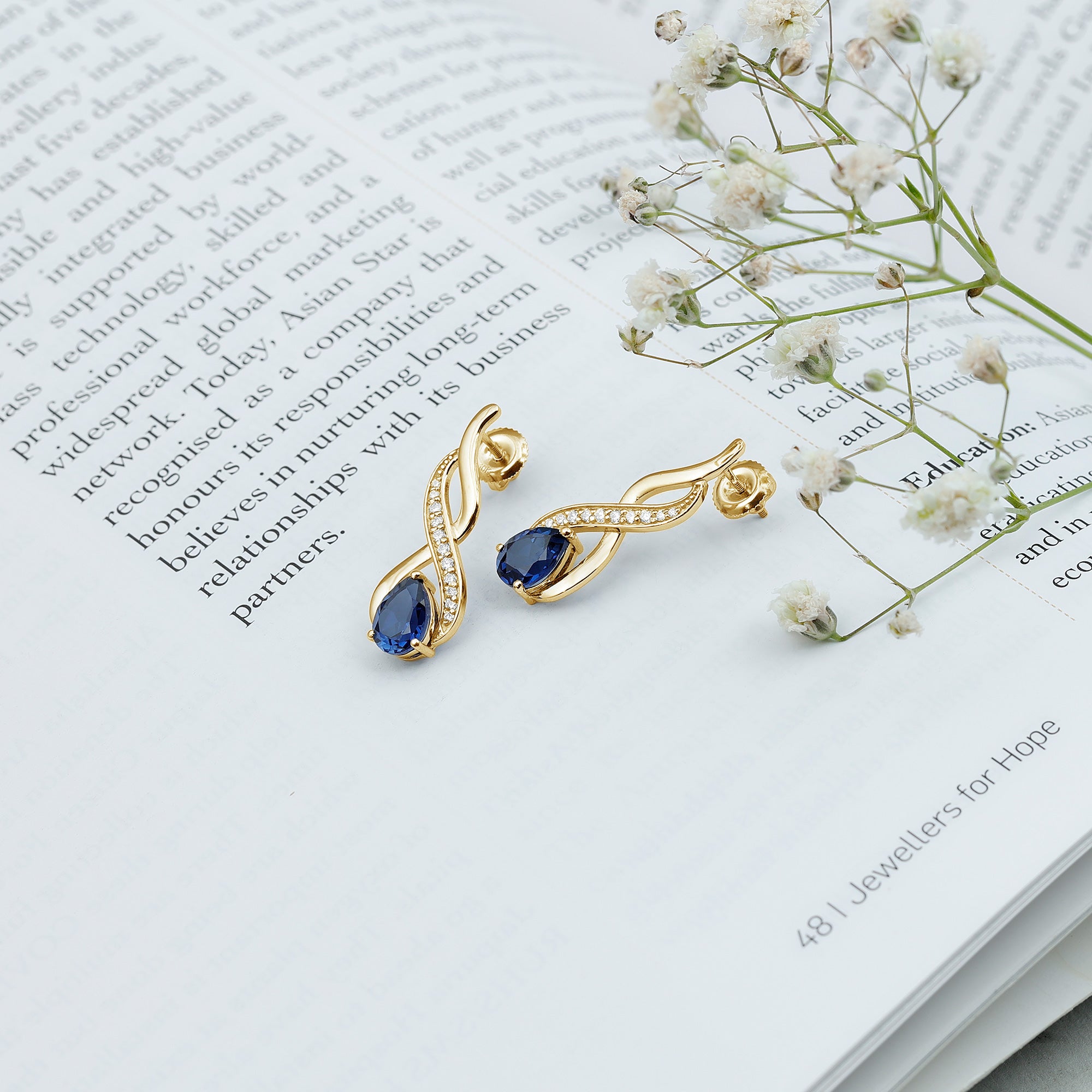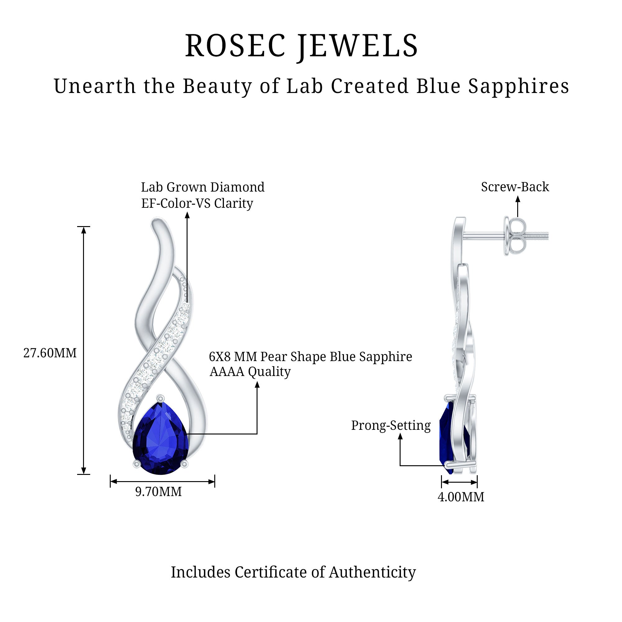 These captivating Sapphire Drop Earrings showcase timeless elegance with a modern twist. Crafted with perfection, they feature a 6x8 mm Pear Shape Blue Sapphire (Aaaa quality) set in a Prong Setting, highlighted by sparkling round shaped Lab Grown Diamond gemstones in an infinity sign, adding a touch of sophistication. Rosec Jewels Blue Sapphire Earrings come with a certificate of authenticity and a Screw Back Closure to ensure secure and comfortable wear. The overall appearance of these lab created Sapphire and Diamond Earrings is sophisticated and royal which makes them a perfect wedding anniversary gift. From Rosec Jewels, synonymous with quality and innovation, experience the epitome of refined beauty.