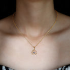 Created Blue Sapphire Lotus Pendant has a lovely delicate design that makes a perfect accessory for the vintage lover. Stunning Round Solitaire Created Blue Sapphire is encased in bezel setting to enhance the beauty of the Floral Charm Necklace. Stack it or wear it alone for a statement look.