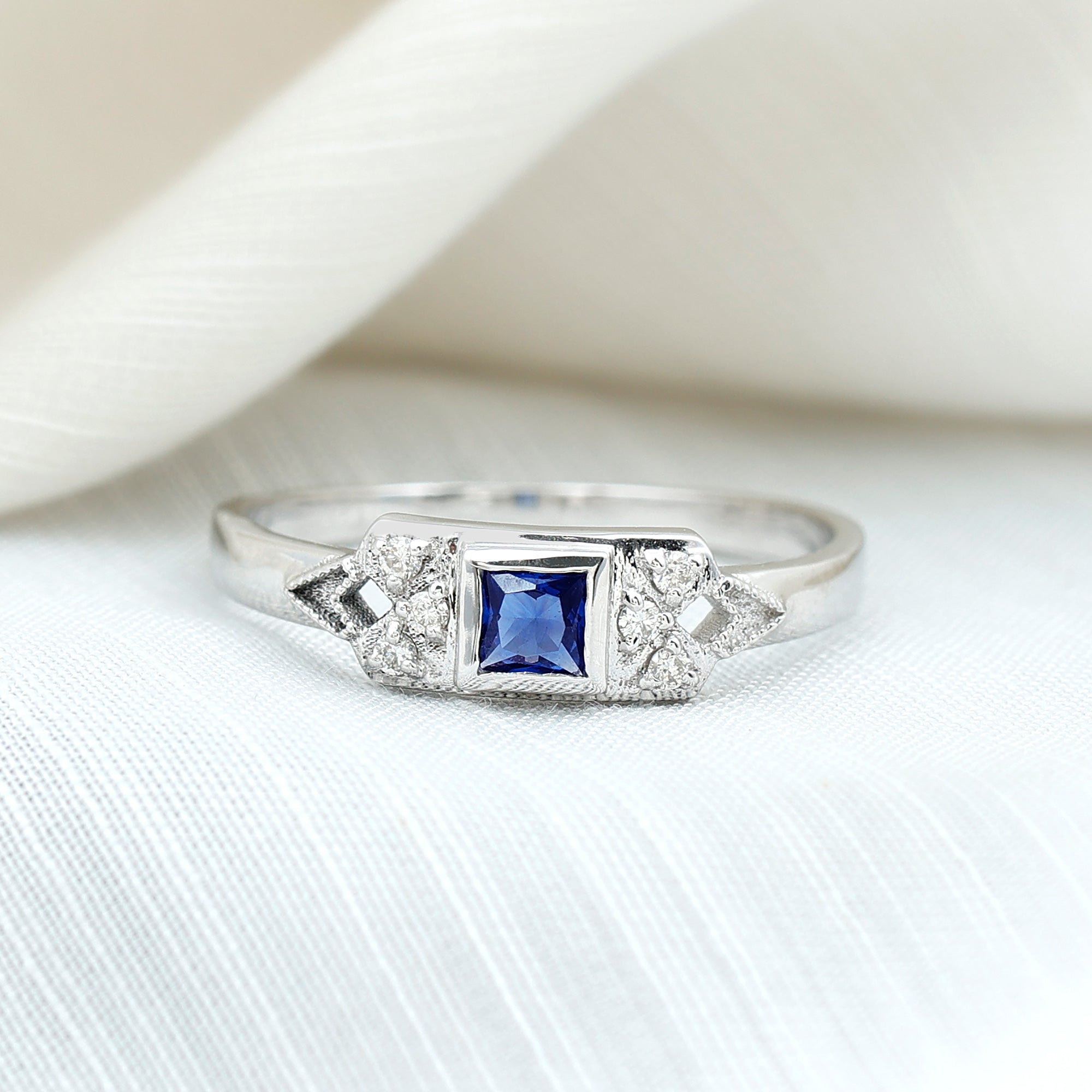 Lab Grown Blue Sapphire Promise Ring with Diamond