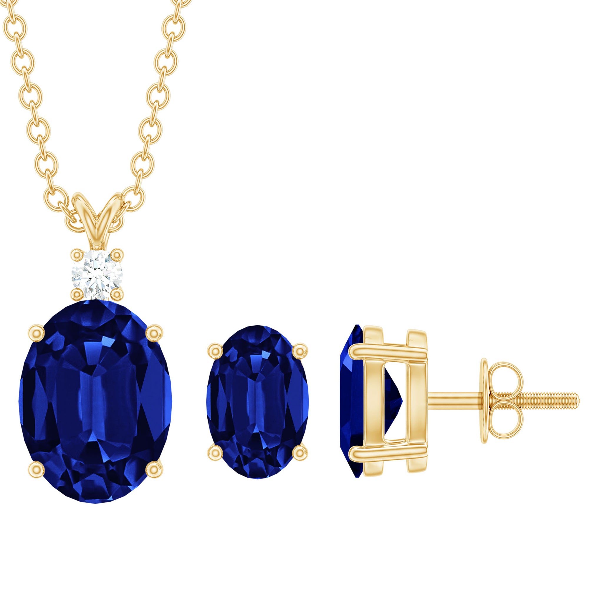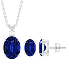 Lab Grown Blue Sapphire Solitaire Jewelry Set with Moissanite