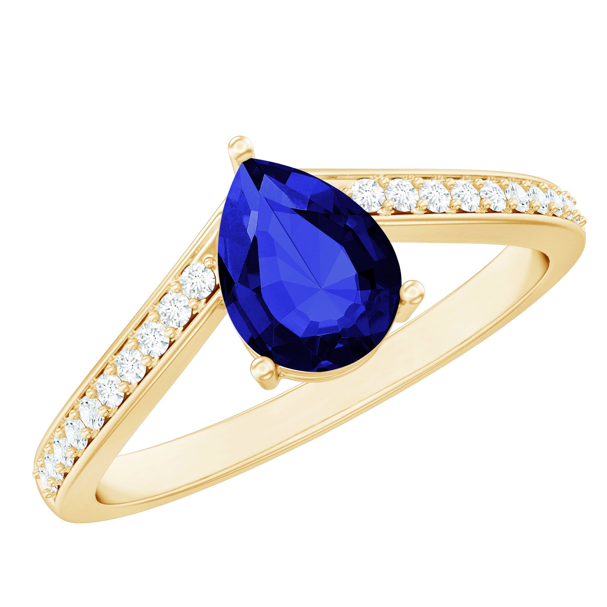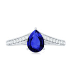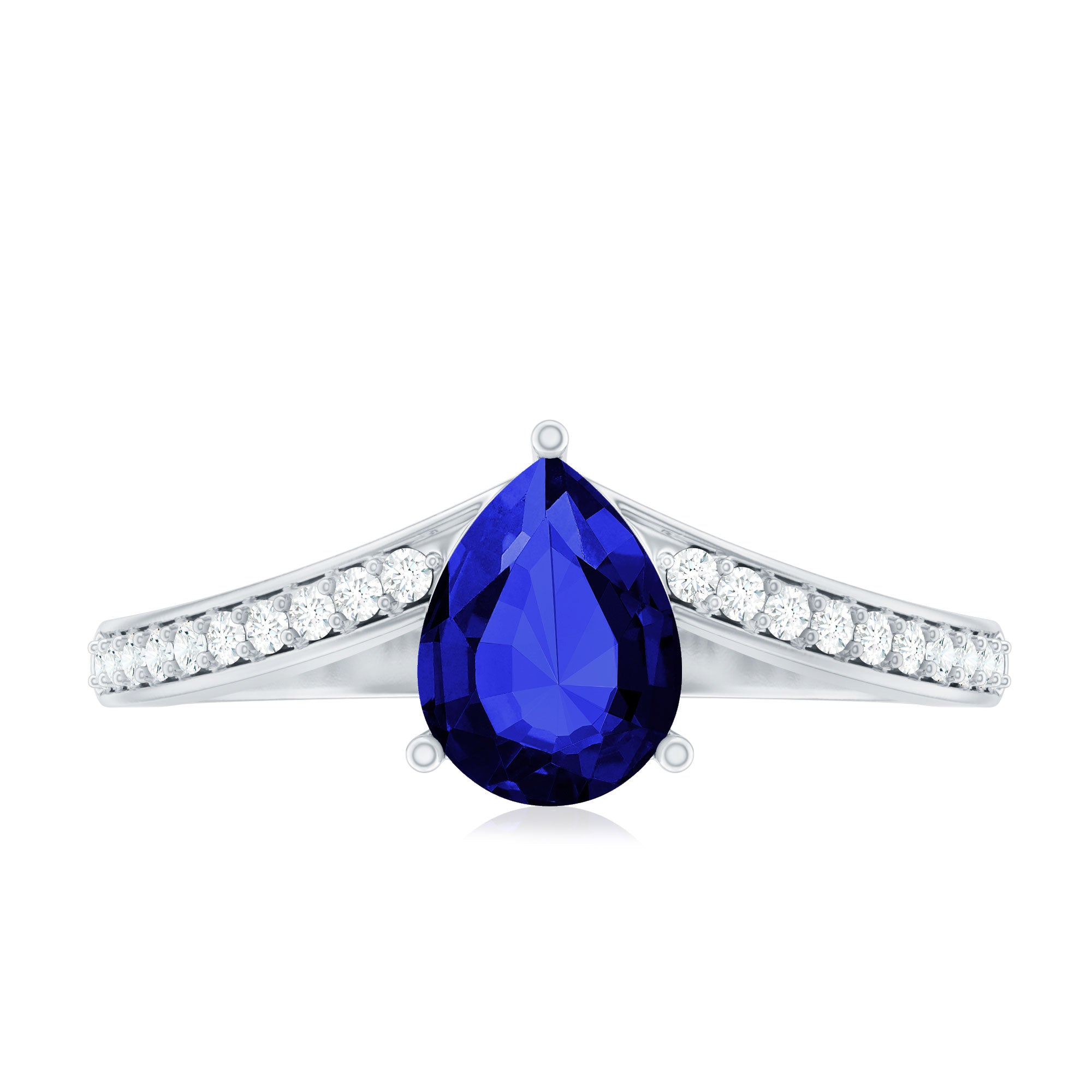 Lab Grown Blue Sapphire Teardrop Engagement Ring With Diamond