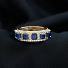 Lab Grown Blue Sapphire Wedding Band with Moissanite Accent