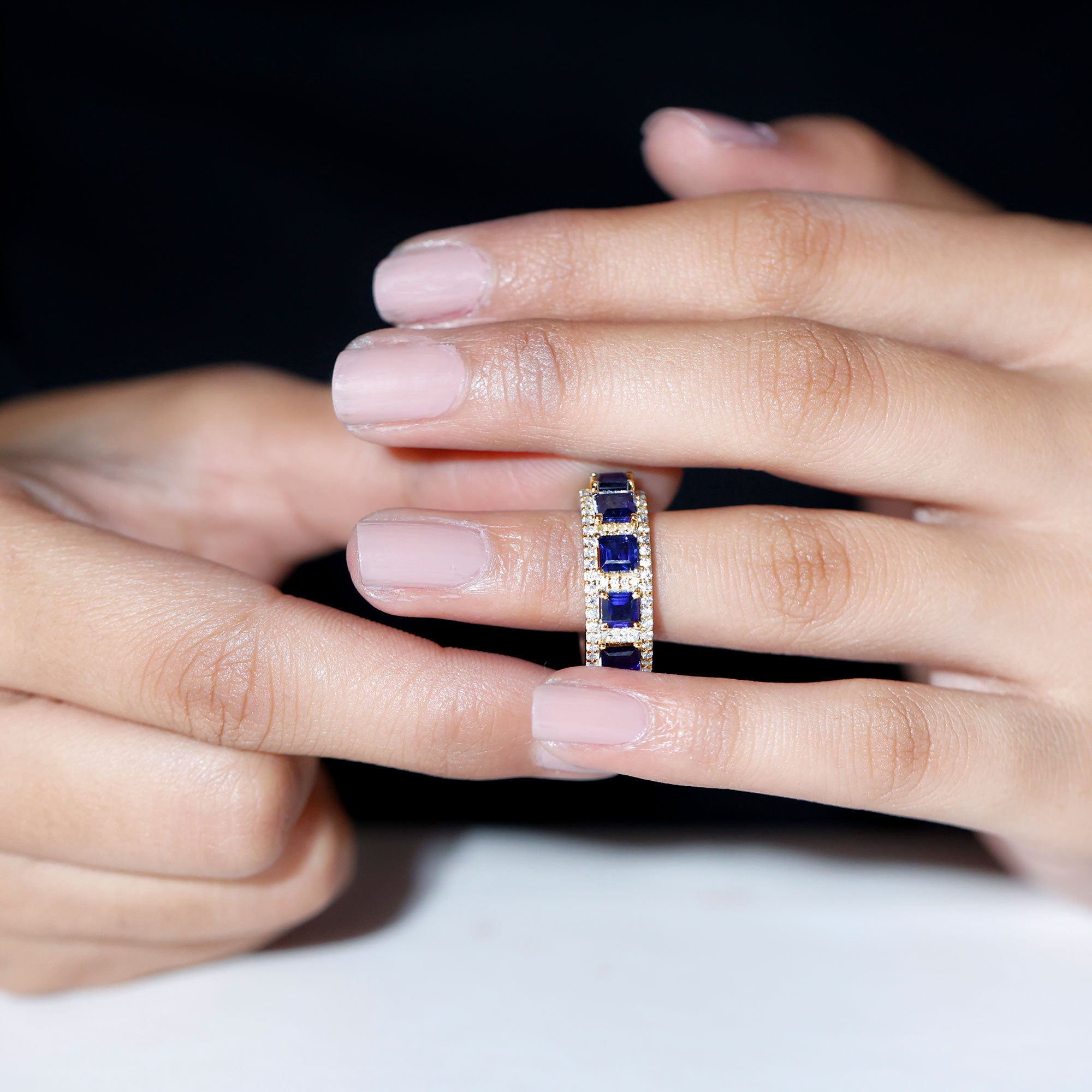 Lab Grown Blue Sapphire Wedding Band with Moissanite Accent