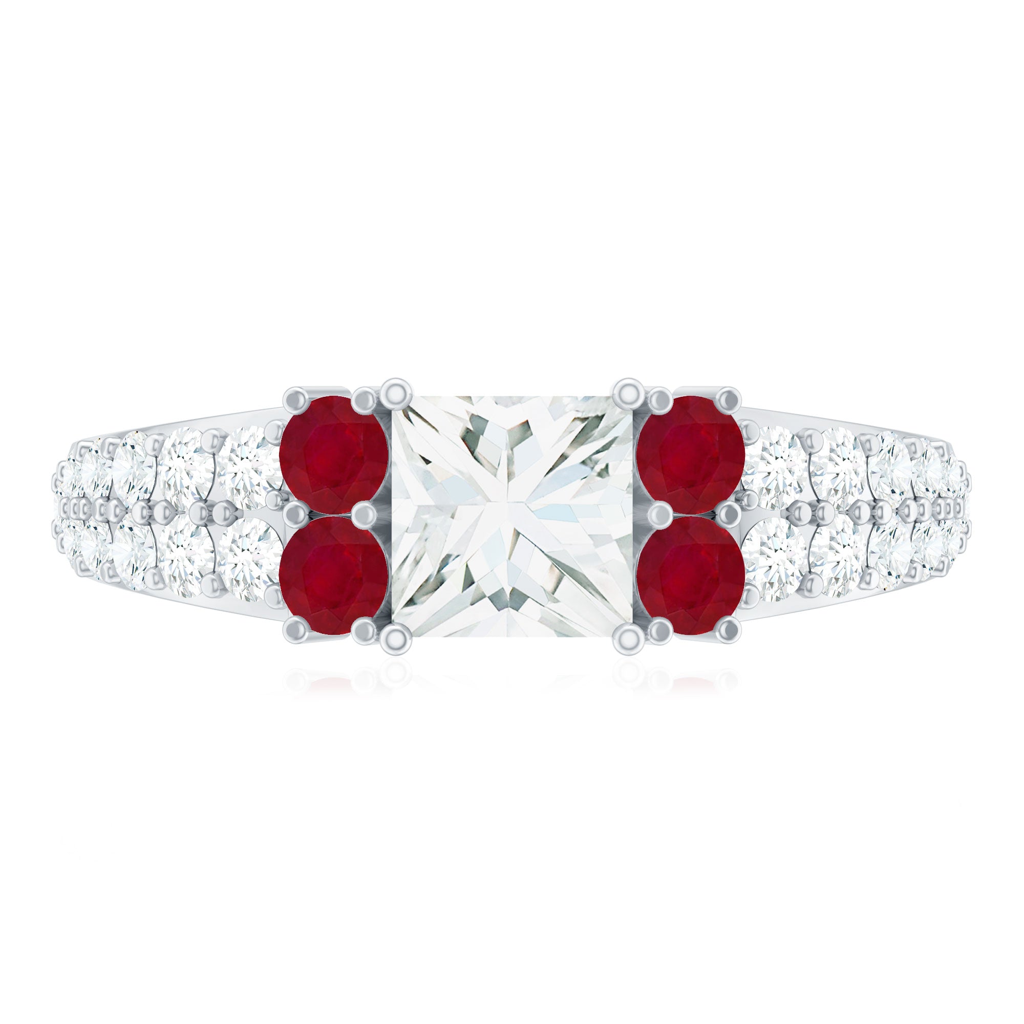 Lab Grown Diamond 5 MM Princess Cut Engagement Ring With Ruby