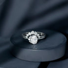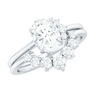 This Lab Grown Diamond Bridal Set is a beautiful symbol of your lifelong commitment, serving as a visual reminder of your bond and the beginning of your never-ending love story. Handcrafted by Rosec Jewels, this Designer Engagement Ring with Band features precious metal and certified lab grown diamond gemstones. The Bridal Ring Set showcases a 6X8 MM oval cut lab grown diamond in a claw setting, complemented by small round diamond gemstones. The Enhancer Guard is adorned with petite round cut lab made diamond gemstones arranged in a graduated style, which enhances the length of the main ring. This Engagement Ring and Wedding Band Set is exactly what you need to shine on your big day. Redefining traditional styles, this Oval Wedding Ring Set features EF-VS Quality diamonds that sparkle beautifully while keeping a classic look. With its designer touches, this Ring Set highlights the natural beauty that represents the essence of your love story, creating a meaningful and lasting symbol of your journey together.