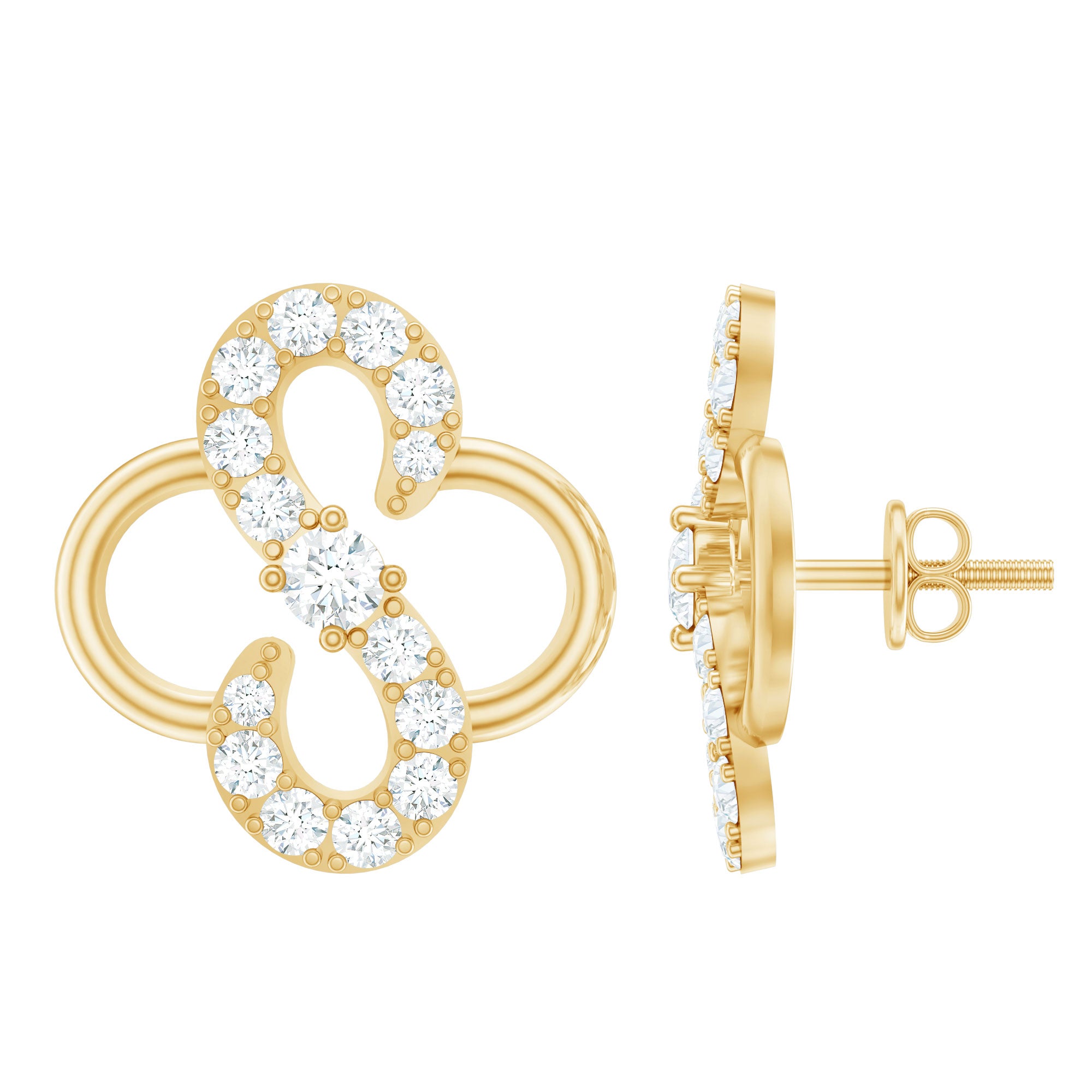 Lab Grown Diamond Floral Stud Earrings with Screw Back