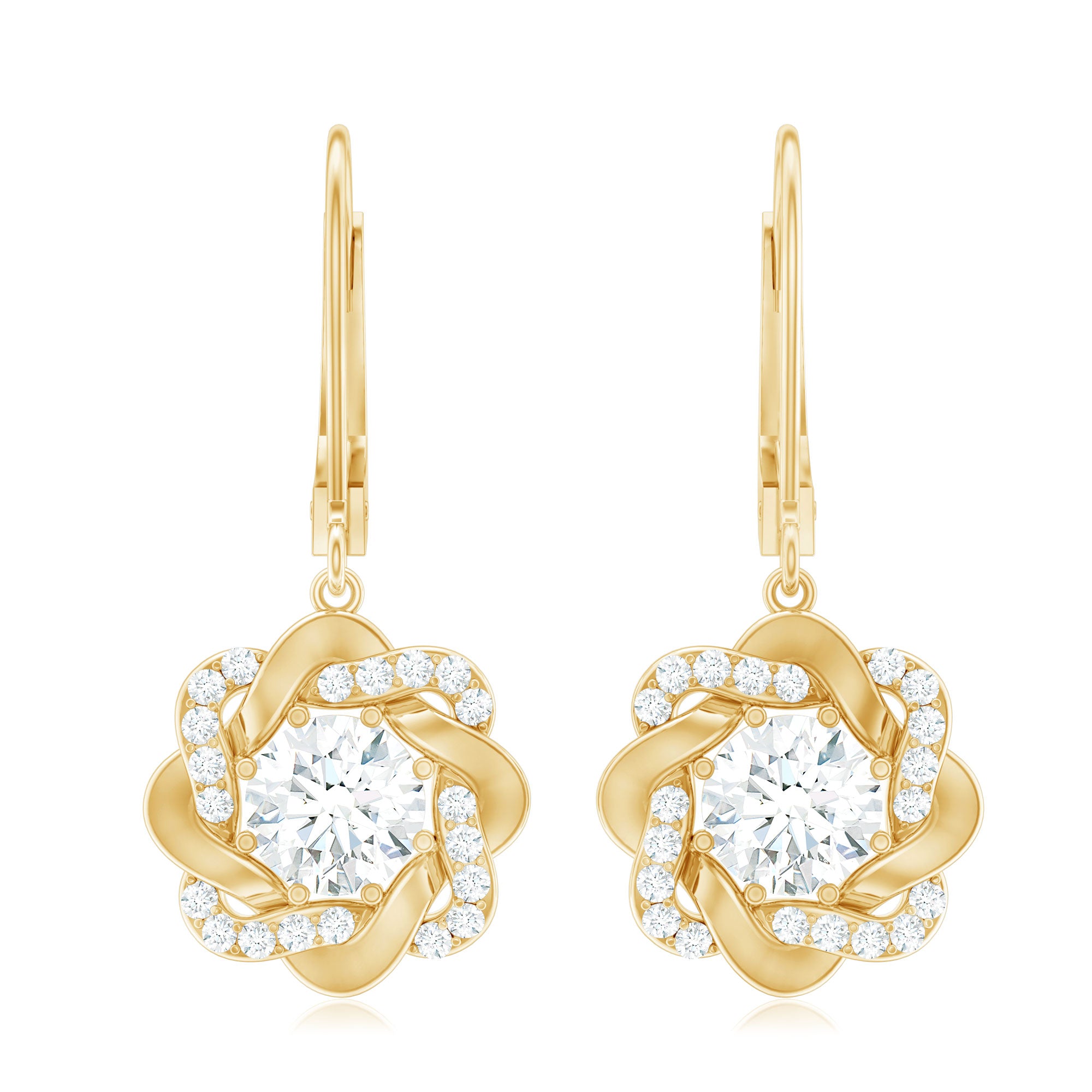 Let your style blossom with these Diamond Drop Earrings, designed to add a touch of natures grace to your jewelry collection. These beauties feature a radiant 6 MM round cut lab grown diamond of EF-VS Quality set in prong setting, surrounded by a floral motif. The intertwined curves of the flower are adorned with smaller diamonds that enhance the overall shimmer. These Flower Dangle Earrings are handcrafted with a secure and comfortable lever back closure, they stay in place allowing you to move with confidence. These Nature Inspired Diamond Earrings are a versatile addition to your jewelry collection, perfect for a wedding, cocktail party, or any grand celebration - wear them and watch every eye in the room turn to you.
