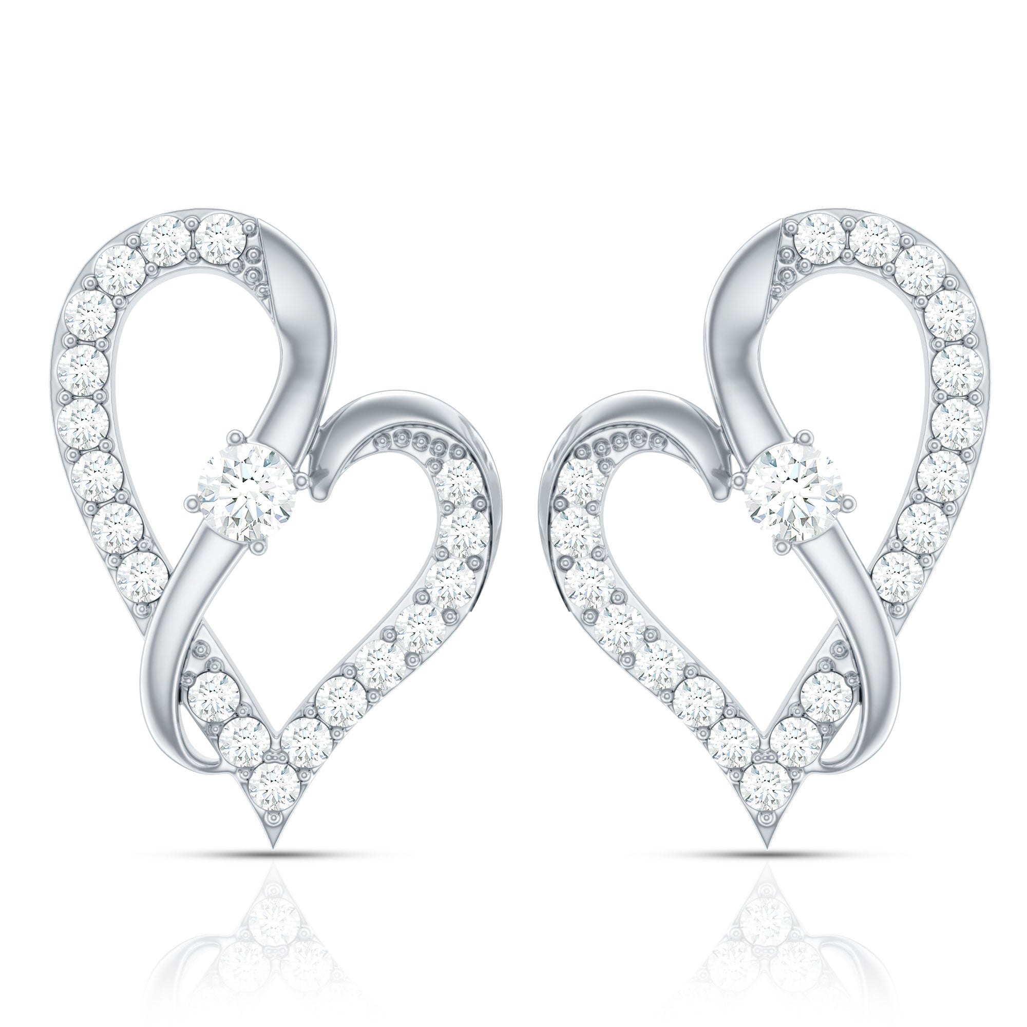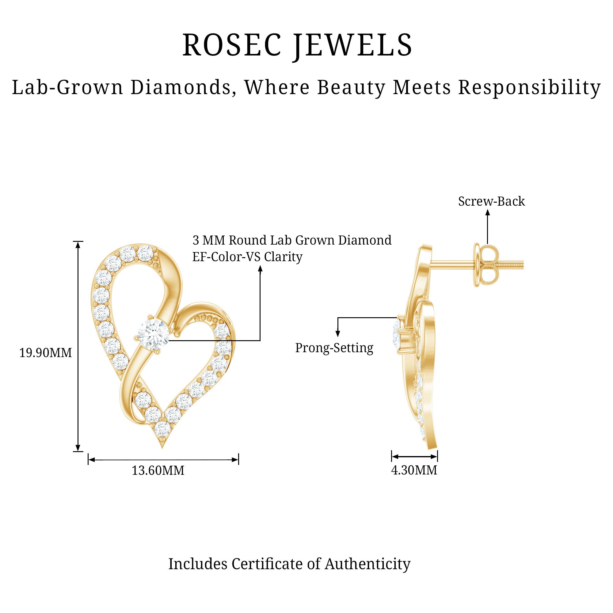 Romanticize the moment with these Heart Stud Earrings adorned with shimmering Round Shape Diamond gemstones (Lab Grown) set in Prong Setting. The Screw Back Closure ensures a secure fit, making them perfect for everyday wear or special occasions. The Diamond is known for its unmatched sparkle, symbolizing purity, honesty, and strength. Also, these Ef-Vs quality Diamond Earrings can be your lady loves birthstone earrings as a diamond is an April Birthstone. Crafted with perfection, these Diamond Heart Earrings capture the essence of love in their minimalist design, brought to you by Rosec Jewels.