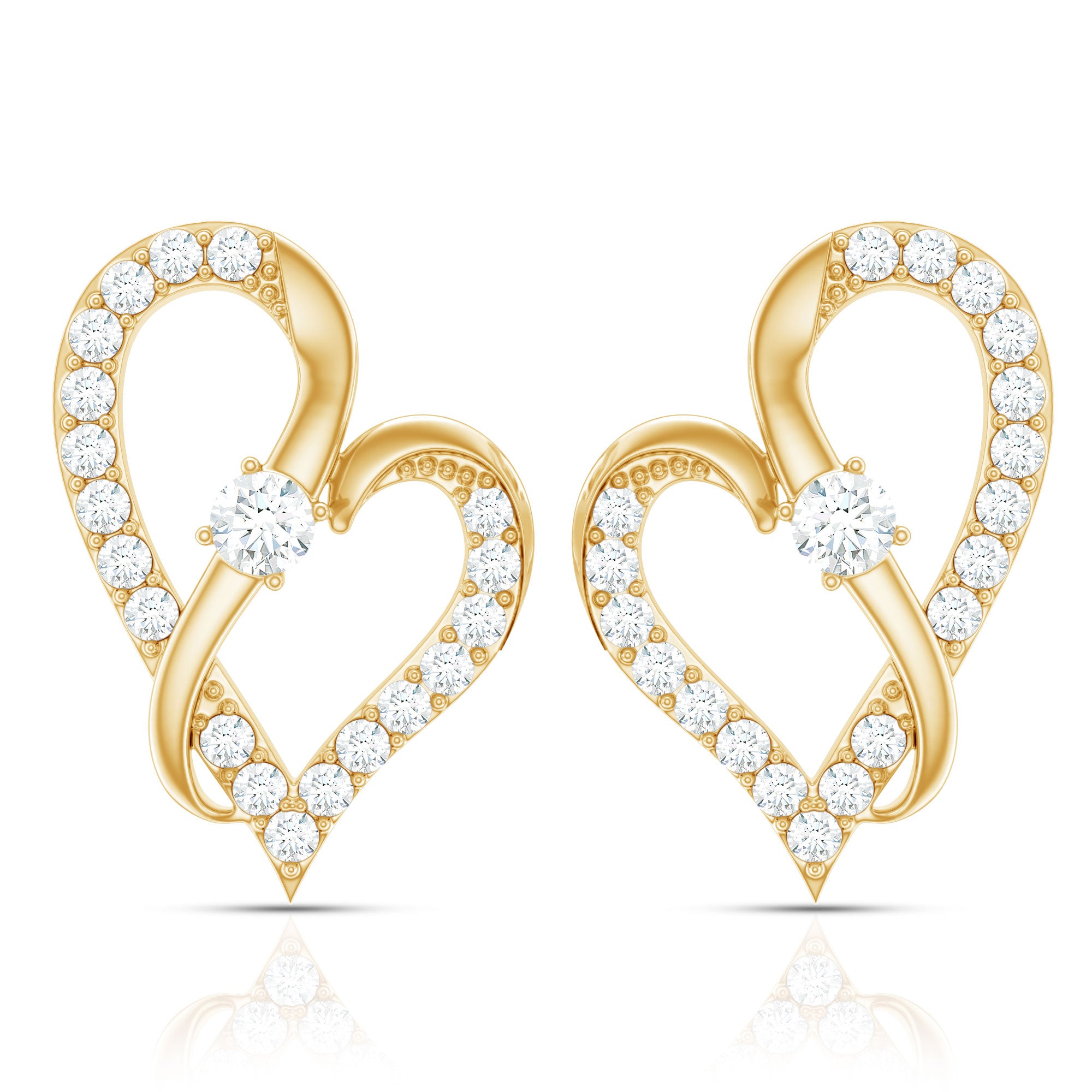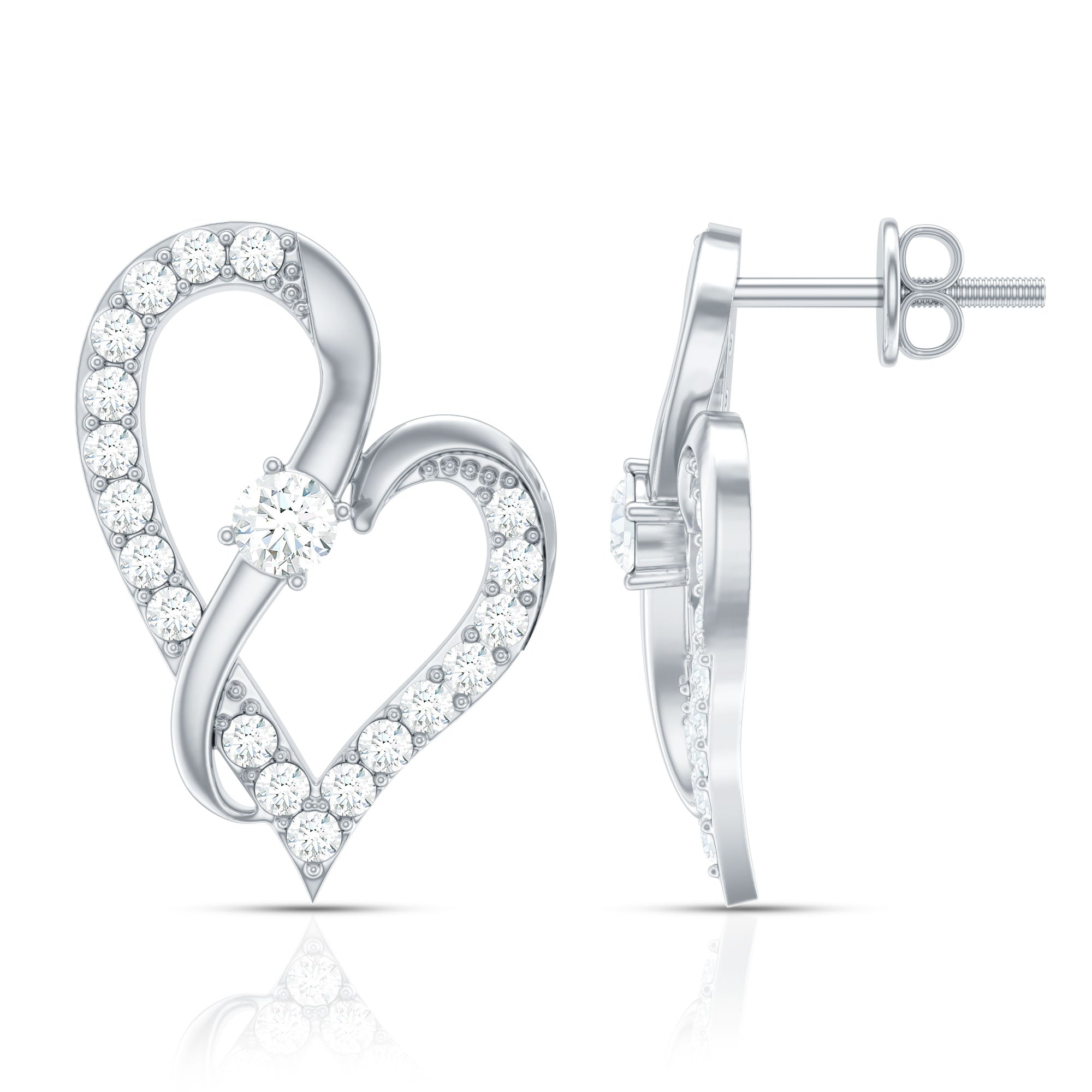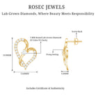Romanticize the moment with these Heart Stud Earrings adorned with shimmering Round Shape Diamond gemstones (Lab Grown) set in Prong Setting. The Screw Back Closure ensures a secure fit, making them perfect for everyday wear or special occasions. The Diamond is known for its unmatched sparkle, symbolizing purity, honesty, and strength. Also, these Ef-Vs quality Diamond Earrings can be your lady loves birthstone earrings as a diamond is an April Birthstone. Crafted with perfection, these Diamond Heart Earrings capture the essence of love in their minimalist design, brought to you by Rosec Jewels.