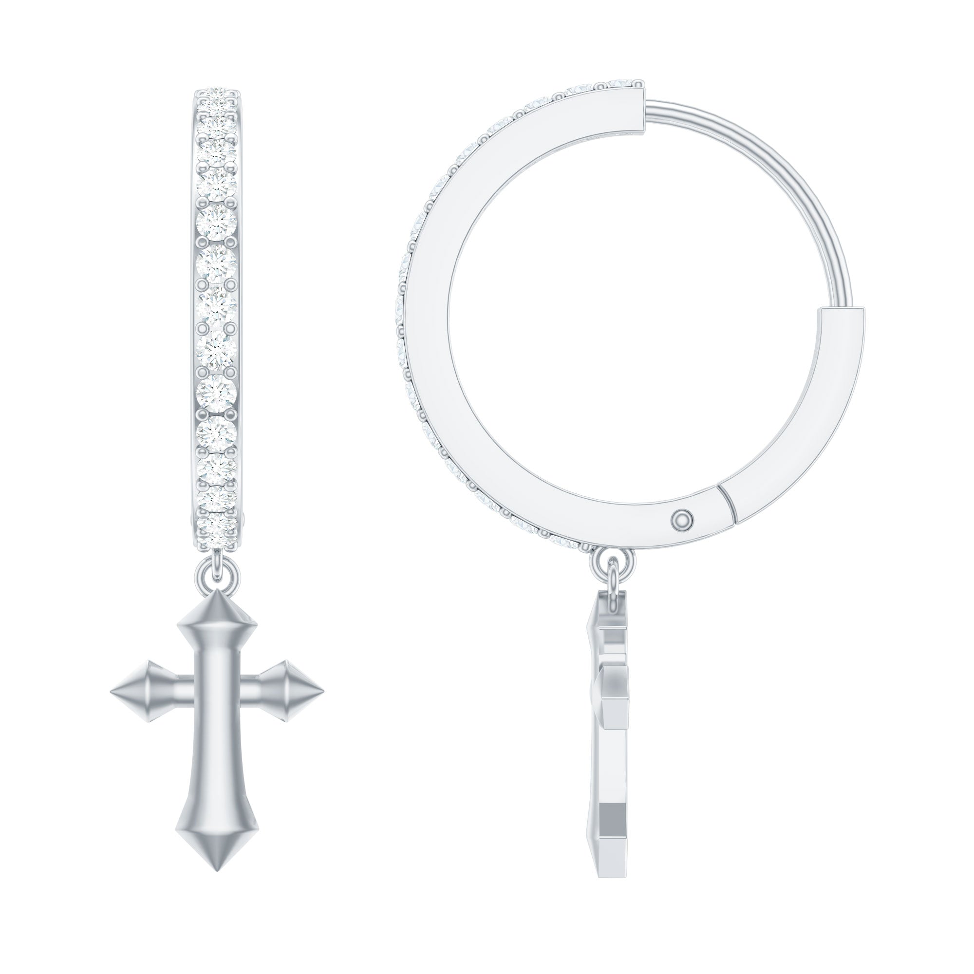Lab Grown Diamond Holy Cross Hoop Drop Earrings For Women