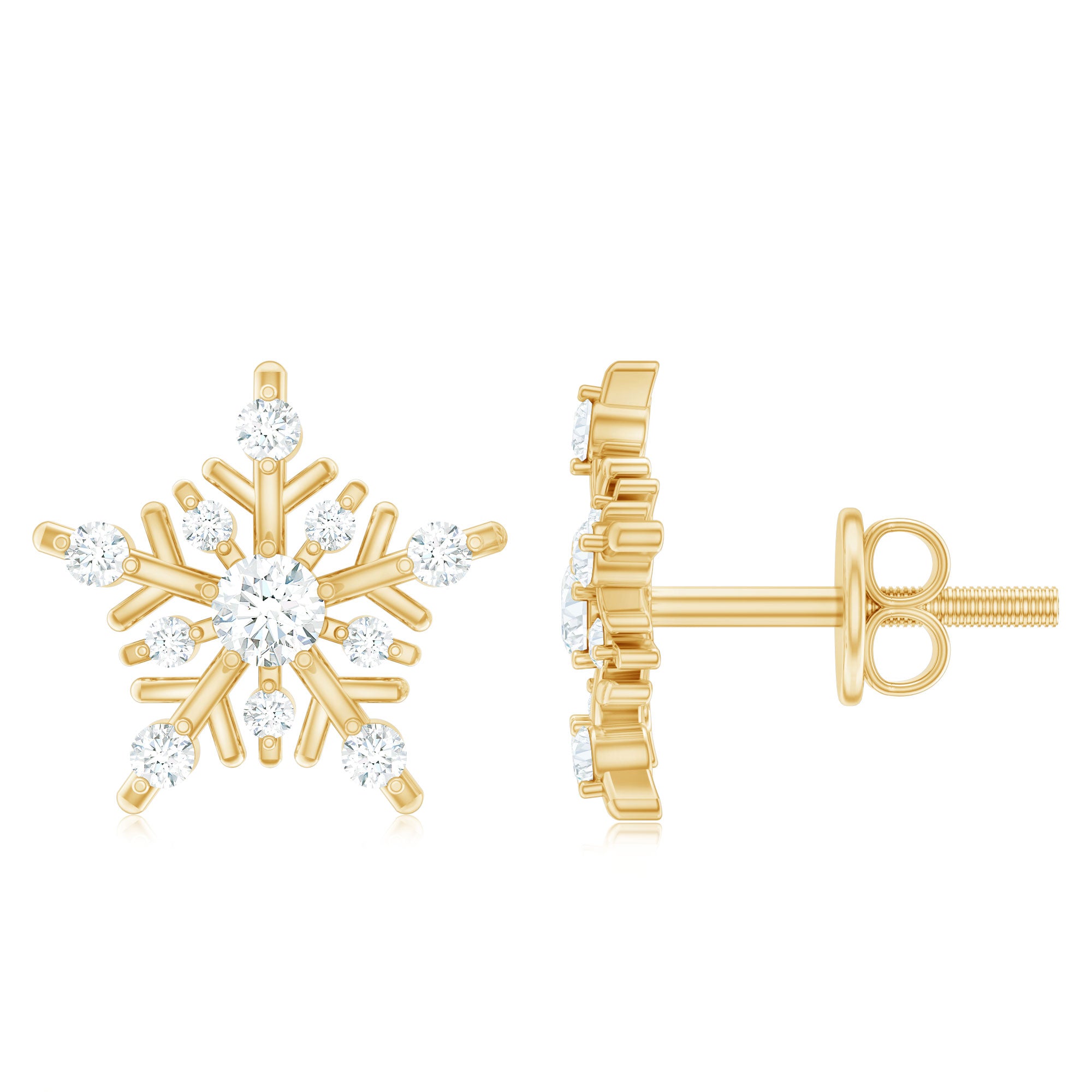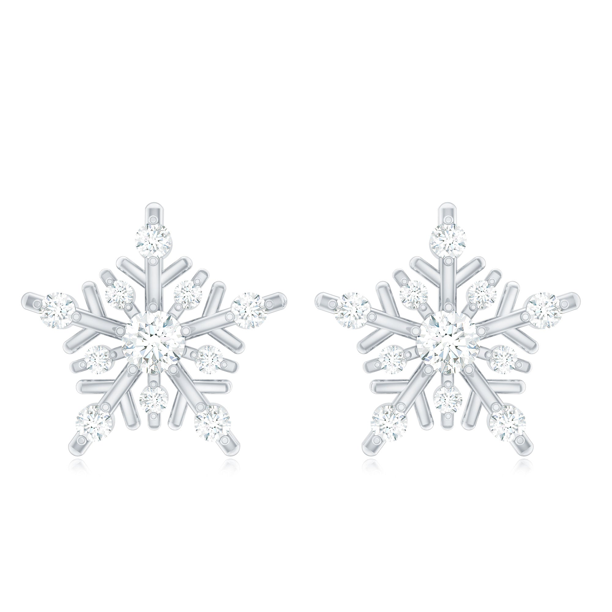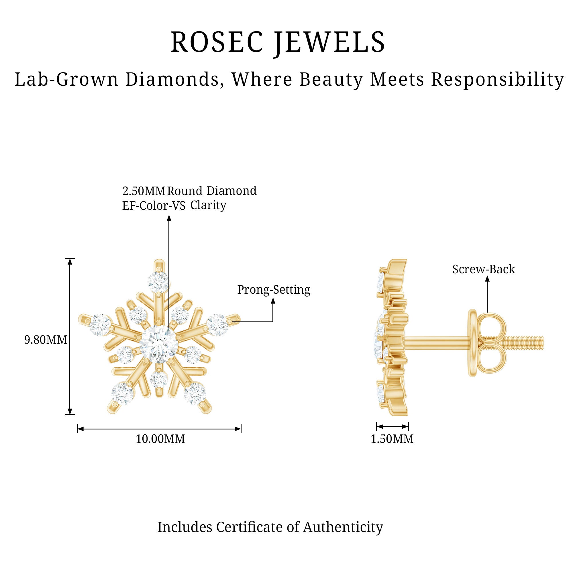 Wear winters sparkle all year round with these charming Snowflake Stud Earrings that go from day to night effortlessly. Handcrafted with care and attention to detail, each earring features a perfect snowflake pattern, set with round cut lab grown diamonds and sleek metal bars. These Diamond Snowflake Earrings are fitted with secure screw back closures, ensuring a snug fit and peace of mind for all day wear. Whether you are dressing up for a winter wedding, heading to a holiday brunch, or simply adding a pop of brilliance to your office look, these Lab Grown Diamond Stud Earrings are versatile enough to go wherever you do. The diamonds used in this Snowflake Jewelry are lab grown which means it is ethically made, eco-friendly, and light on your pocket without compromising on brilliance of beauty. Remarkably, they add a modern twist, creating a delightful play of sparkle, making them a perfect gift for special occasions, whether it is an anniversary, birthday, or just because. These Diamond Flower Earrings are great for any woman looking to elevate their style.