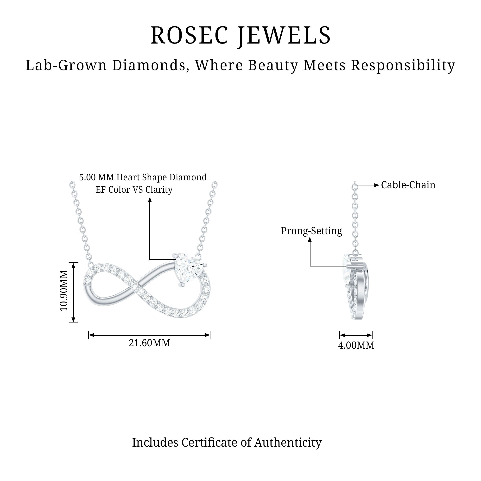 Lab Grown Diamond Infinity Heart Necklace For Women