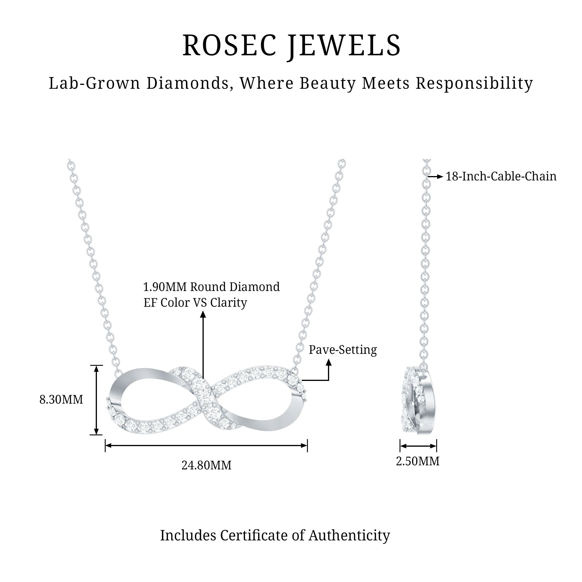Show your never ending love to your lady by presenting this stunning Diamond Infinity Necklace. This Minimalist Necklace features an infinity loop decorated with dainty round shaped pave set diamonds. The Lab Grown Diamond Pendant Necklace is a classic and designer piece of jewelry perfect for any occasion. Whether you are celebrating an anniversary, a milestone, or simply expressing your love, this Forever Necklace is the perfect symbol of eternity. Gift her something that shines as brightly as she does, because she deserves nothing but the best.