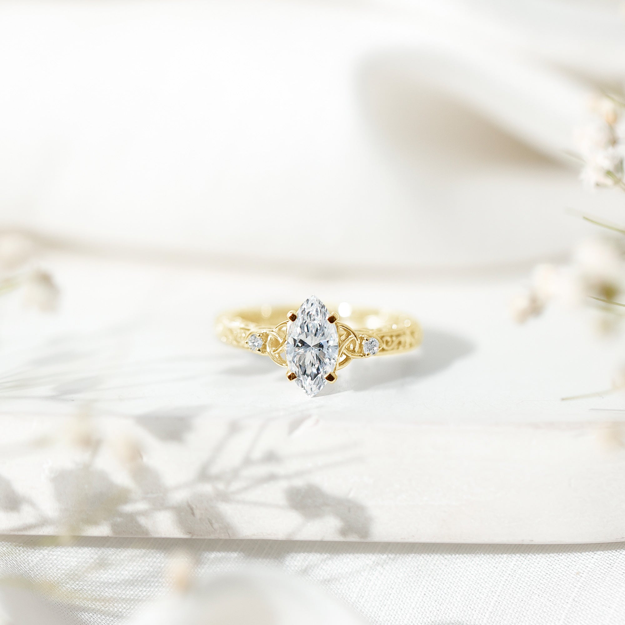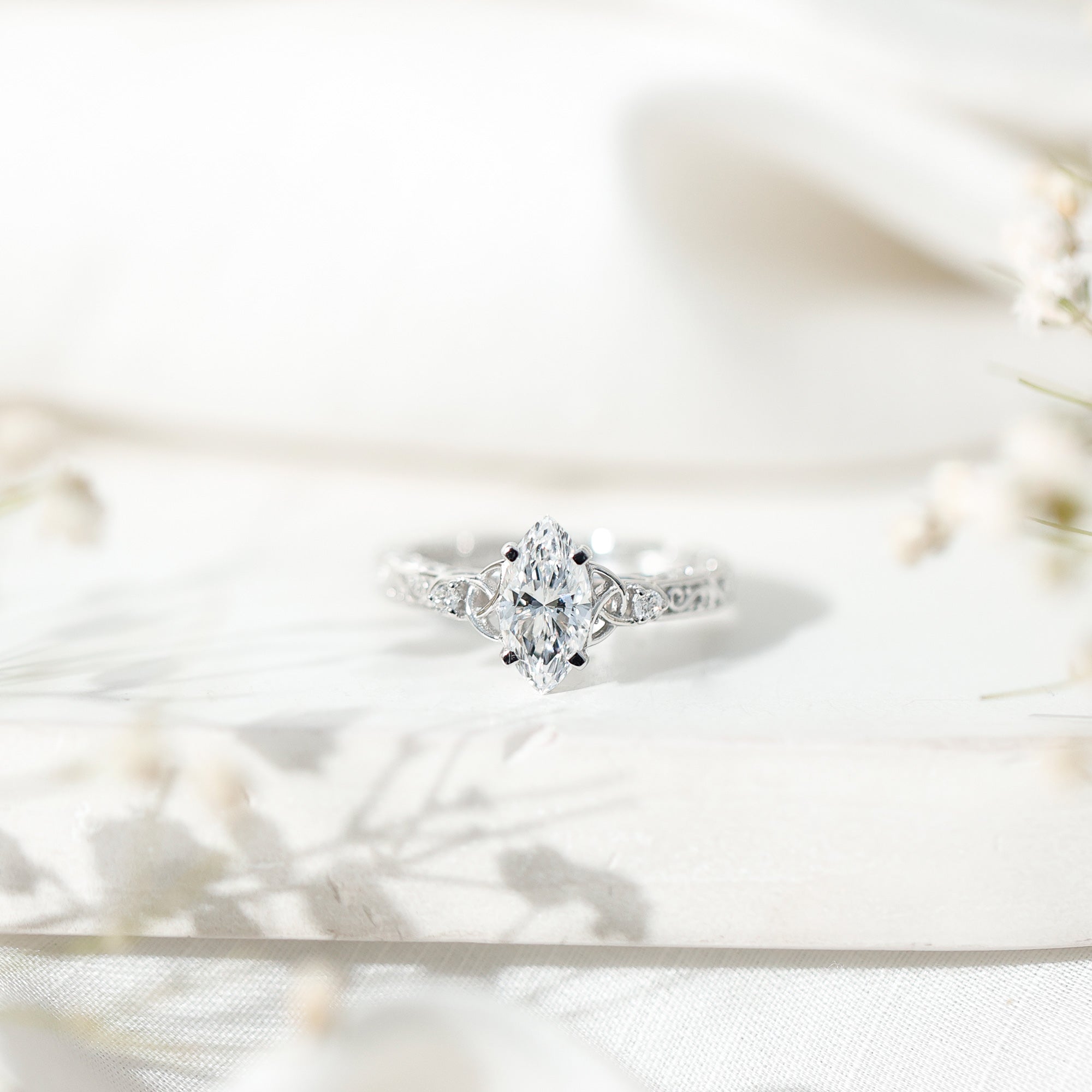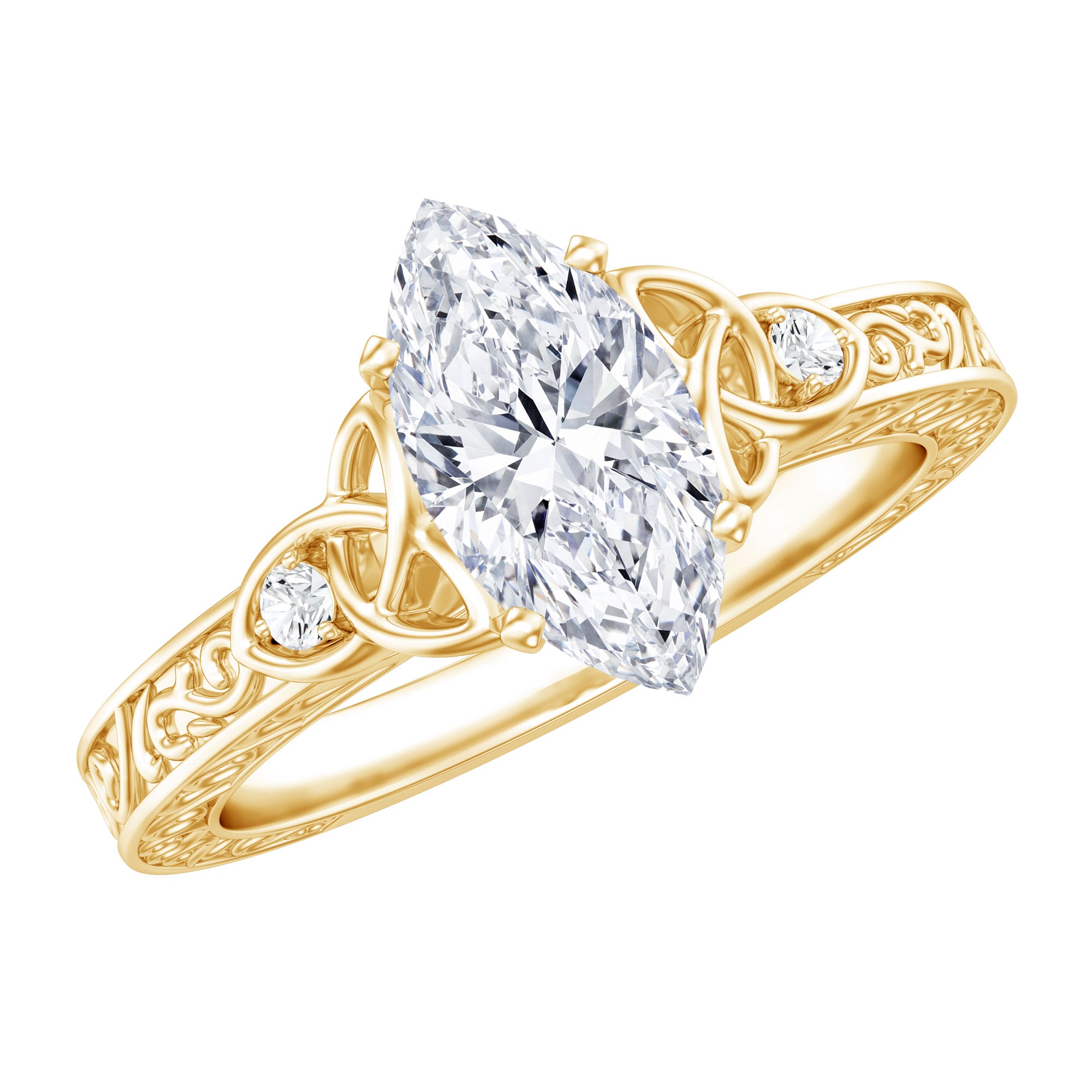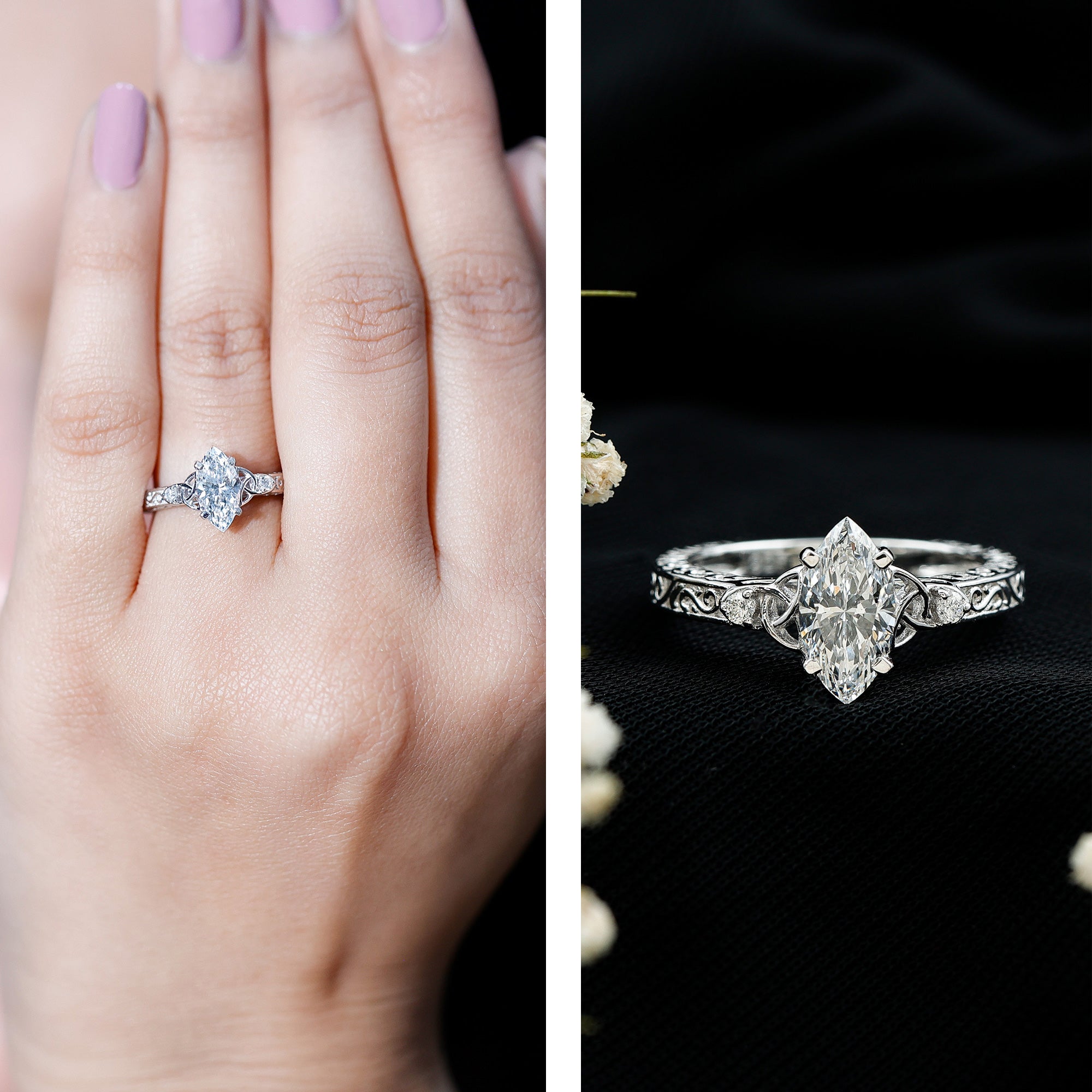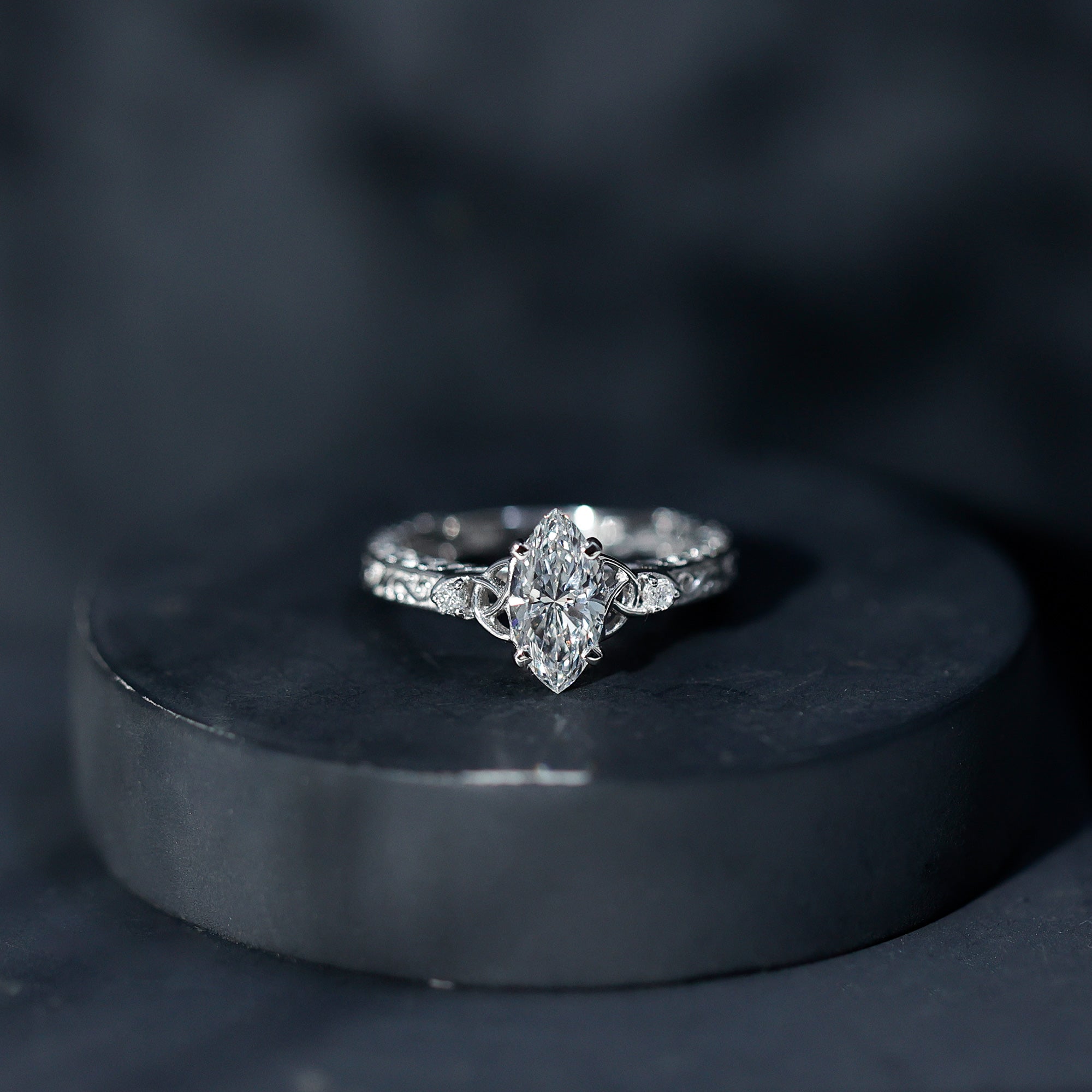 Lab Grown Diamond Marquise Engagement Ring with Celtic Knot Detail