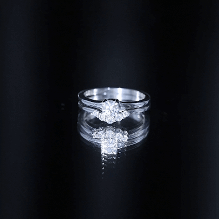 Begin a new chapter of life with this Diamond Wedding Ring Set. The Stacking Rings include a Low Profile Engagement Ring featuring a round shaped Lab Grown Diamond in a secure prong setting and petite diamond shadow band that sits flush against the engagement ring, creating a sleek and distinctive look. The shine of this ring will always remind her about your love and affection which makes it a perfect symbol of love. This Diamond Ring with Enhancer is beautiful and catchy which will make her the center of attention and let her feel special and proud of your choice for this Engagement Ring with Band.