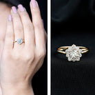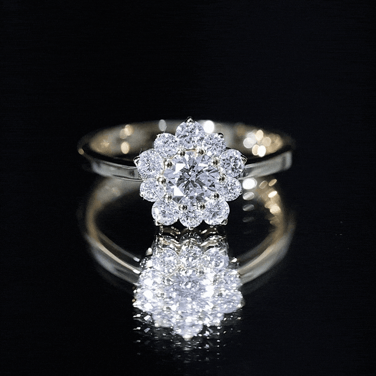 The result is a ring that blends traditional diamond elegance with a nature-inspired artistic approach.