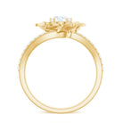 Embrace the allure of the natural world with this heartwarming Floral Ring. This captivating ring captures the delicate beauty of blooming flowers, with a brilliant 5 MM Round Shape Lab Grown Diamond set in intricately detailed petals. The bypass design symbolizes the intertwining of two lives. The petite Simulated Diamond gemstones add extra sparkle to this enchanting piece.