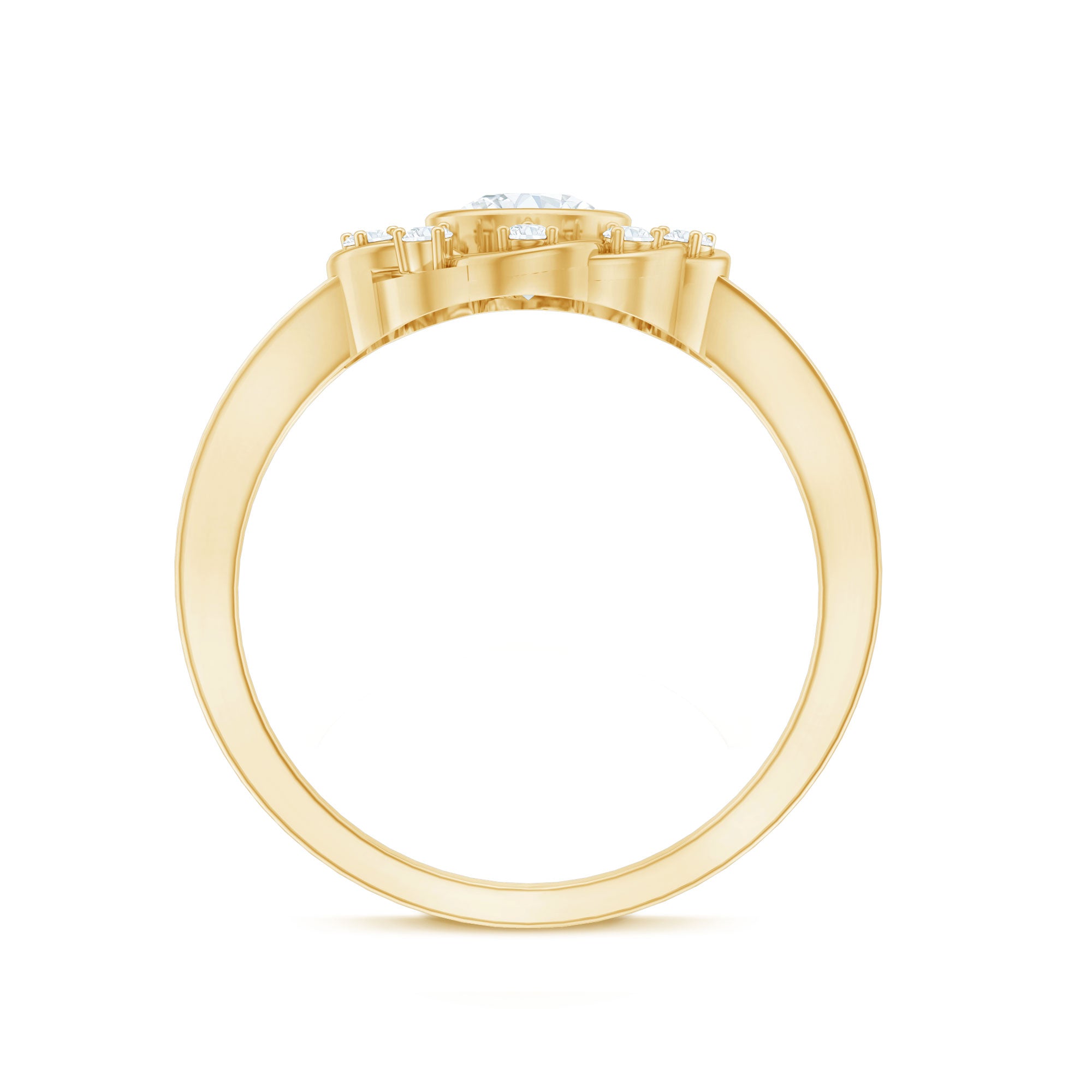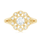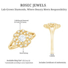 The Floral Engagement Ring is a breathtaking ode to the beauty of natures blossoms. A 5 MM Round Shape Lab Grown Diamond gemstone set as a center stone in Bezel Setting surrounded by smaller stones. This ring celebrates a love that blooms, its detailed craftsmanship captures the essence of romance and elegance. A perfect choice for those who seek an engagement ring as unique and enduring as their love story.
