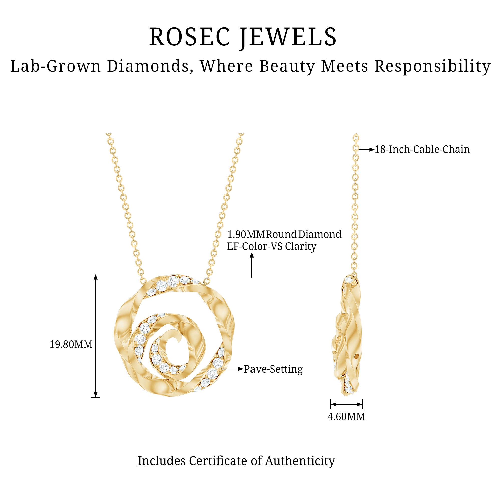 Add a touch of timeless elegance to your everyday style with this simple yet stunning Lab made Diamond Swirl Necklace. This Spiral Pendant features round shaped diamonds of EF-VS Quality set in pave setting. This Diamond Necklace for Women will never go out of style and can be worn as a daily statement. Crafted with precision, this Unique Necklace offers unparalleled radiance, durability, and ethical brilliance. Whether worn alone for a subtle statement or layered for a trendy, stacked look, this Round Necklace is must-have for your jewelry collection. Presented in a premium box, its the perfect choice for a moment youll cherish forever.
