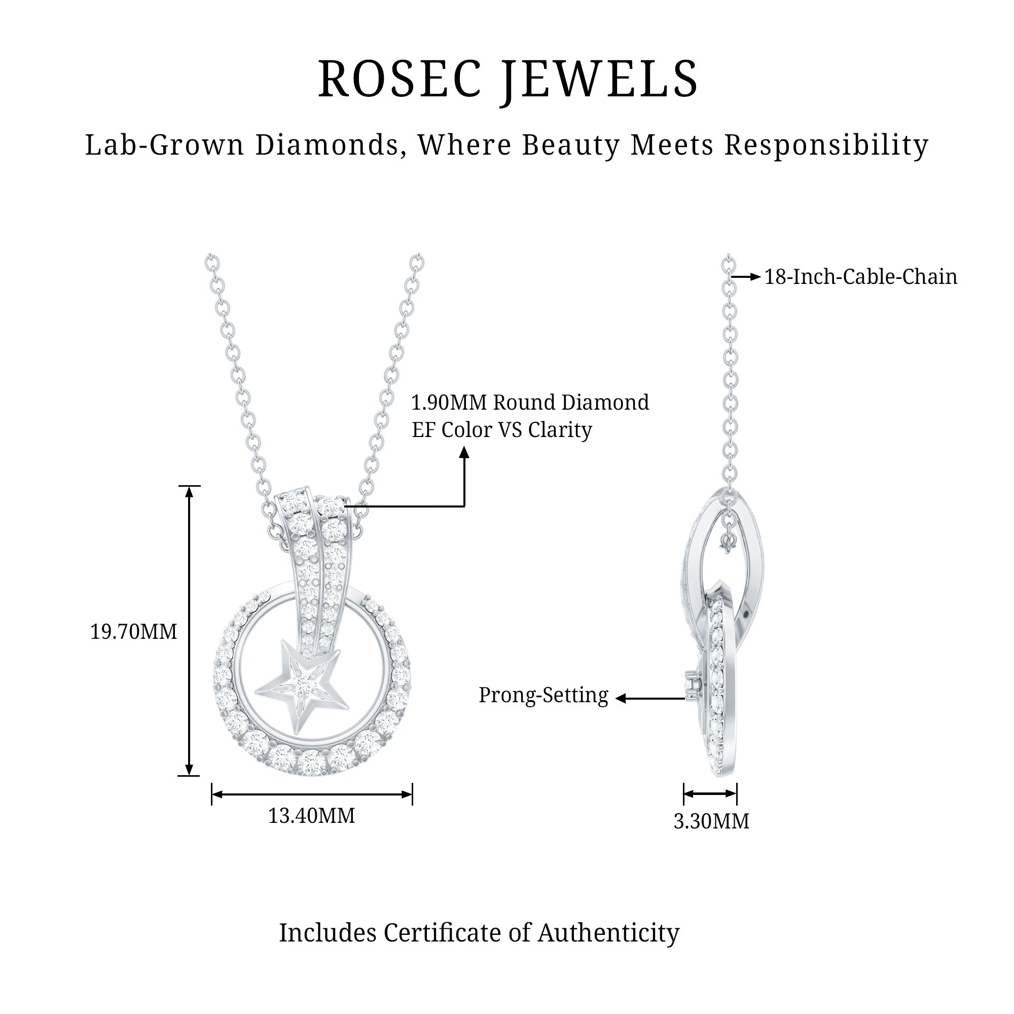 Lab Grown Diamond Star Circle Necklace With Decorated Bail