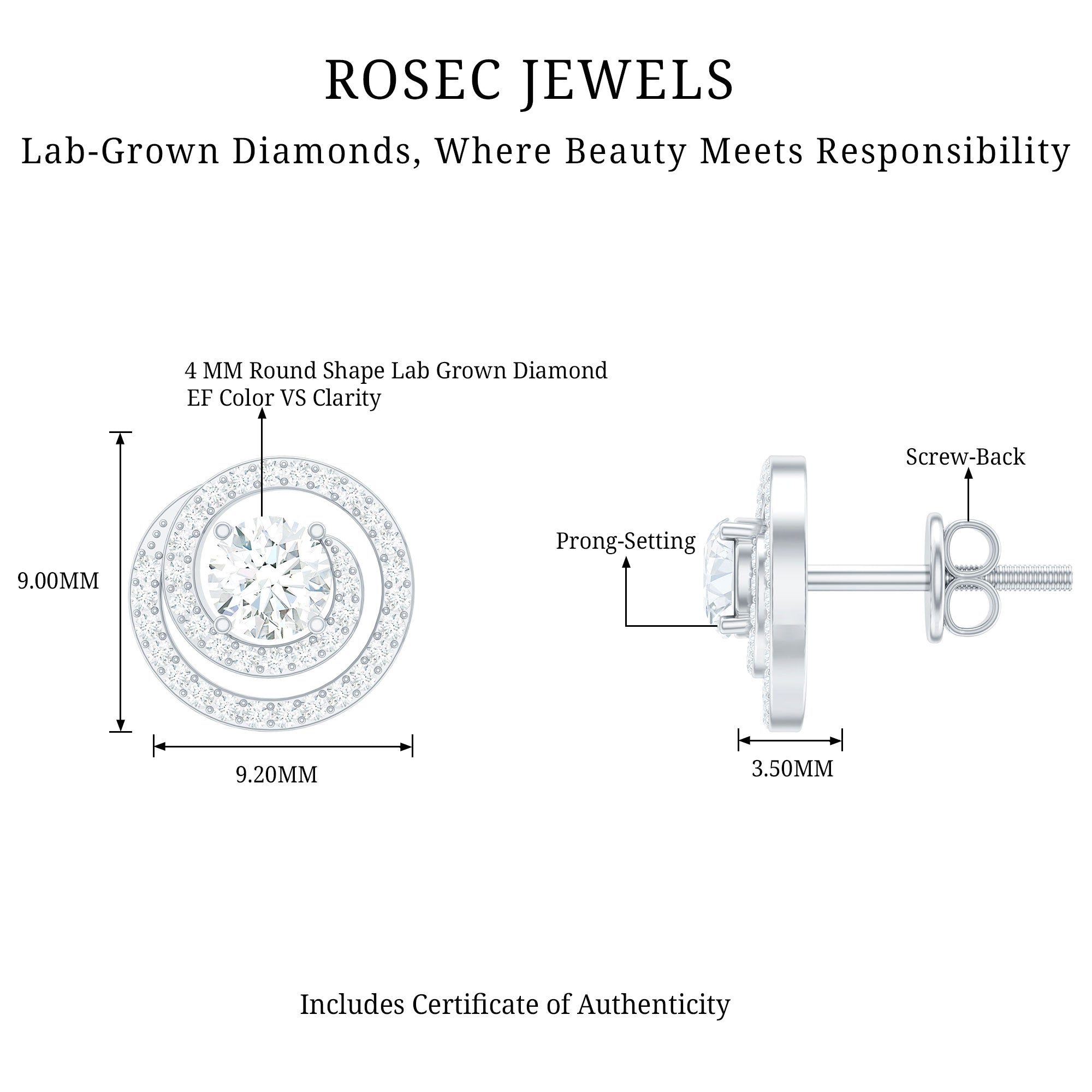 Make yourself the talk of the town by wearing these beautiful Diamond Swirl Earrings. These Stud Earrings are adorned with a center round cut lab-grown diamond set in a prong setting and their spiral is studded with round dainty gemstones, radiating more charm. We designed these Round Earrings with screw back closures for a comfortable and secure look, so you can wear them all day and night without any worry. And if you are looking for a meaningful gift, these Lab Grown Diamond Earrings make a thoughtful present for birthdays, anniversaries, weddings, or just to remind someone how much they mean to you. Whether it is for your mom, sister, wife, daughter, or best friend, a diamond is always the right way to say you are special".