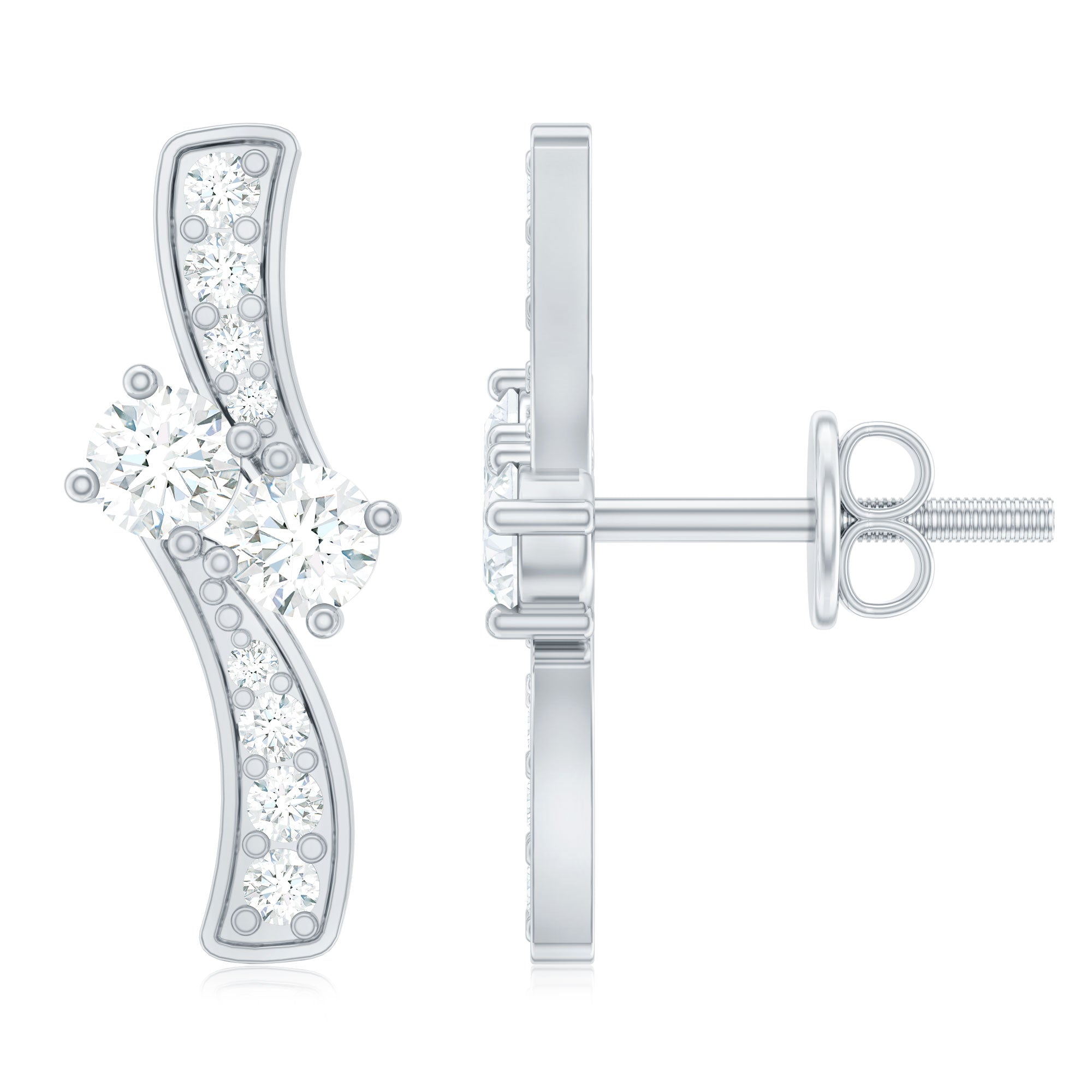 Lab Grown Diamond Two Stone Stud Earrings With Screw Back