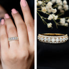Alluring in its look this Lab Grown Diamond Ring scintillates sparkle with a symbol of life-changing moments and epic love that would always remind you of the moments shared. Featuring Round Shaped Lab Grown Diamond in Shared Prong Setting in a half eternity pattern. To accentuate this Eternity Wedding Band are the round brilliant cut Lab Grown Diamond on the edges giving a dazzling texture and sparkle. This Diamond Wedding Band symbolizes never-ending love which is a modern take on a classic design creating a perfect balance between simplicity and elegance. A perfect mix and match with your engagement ring.