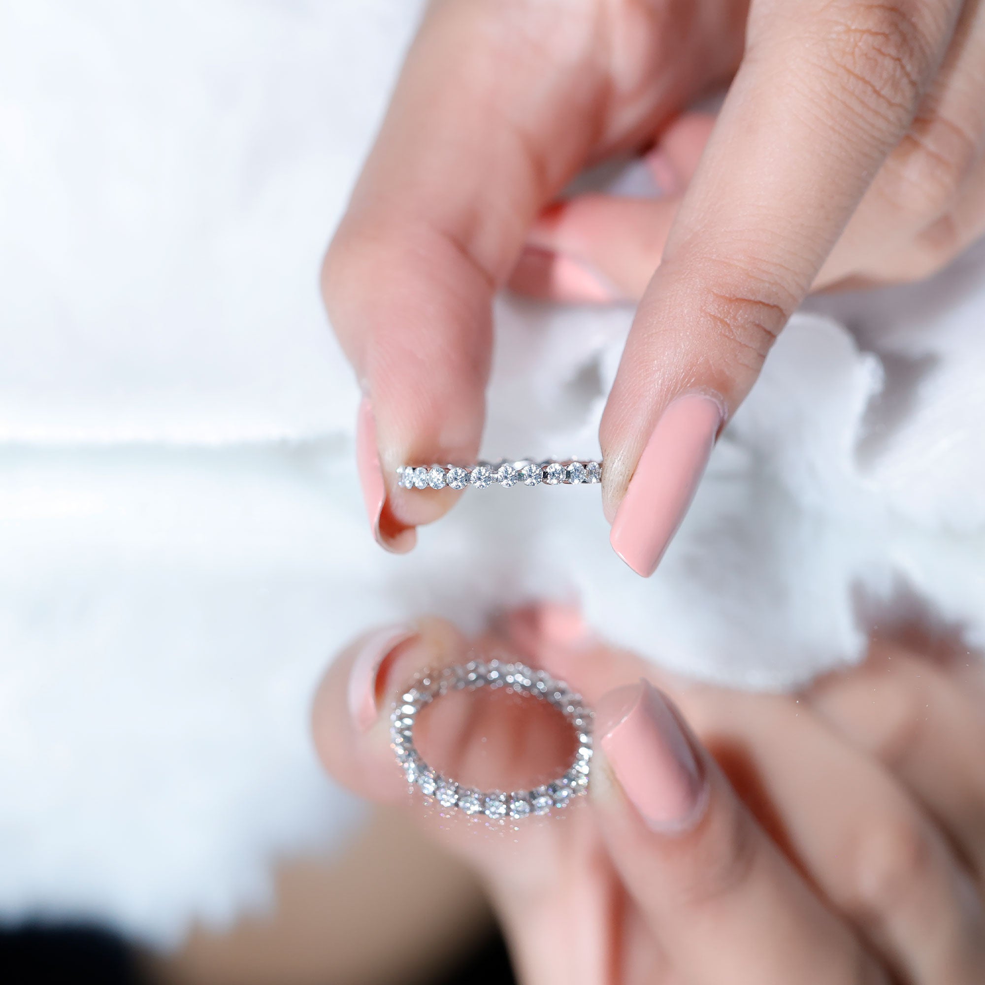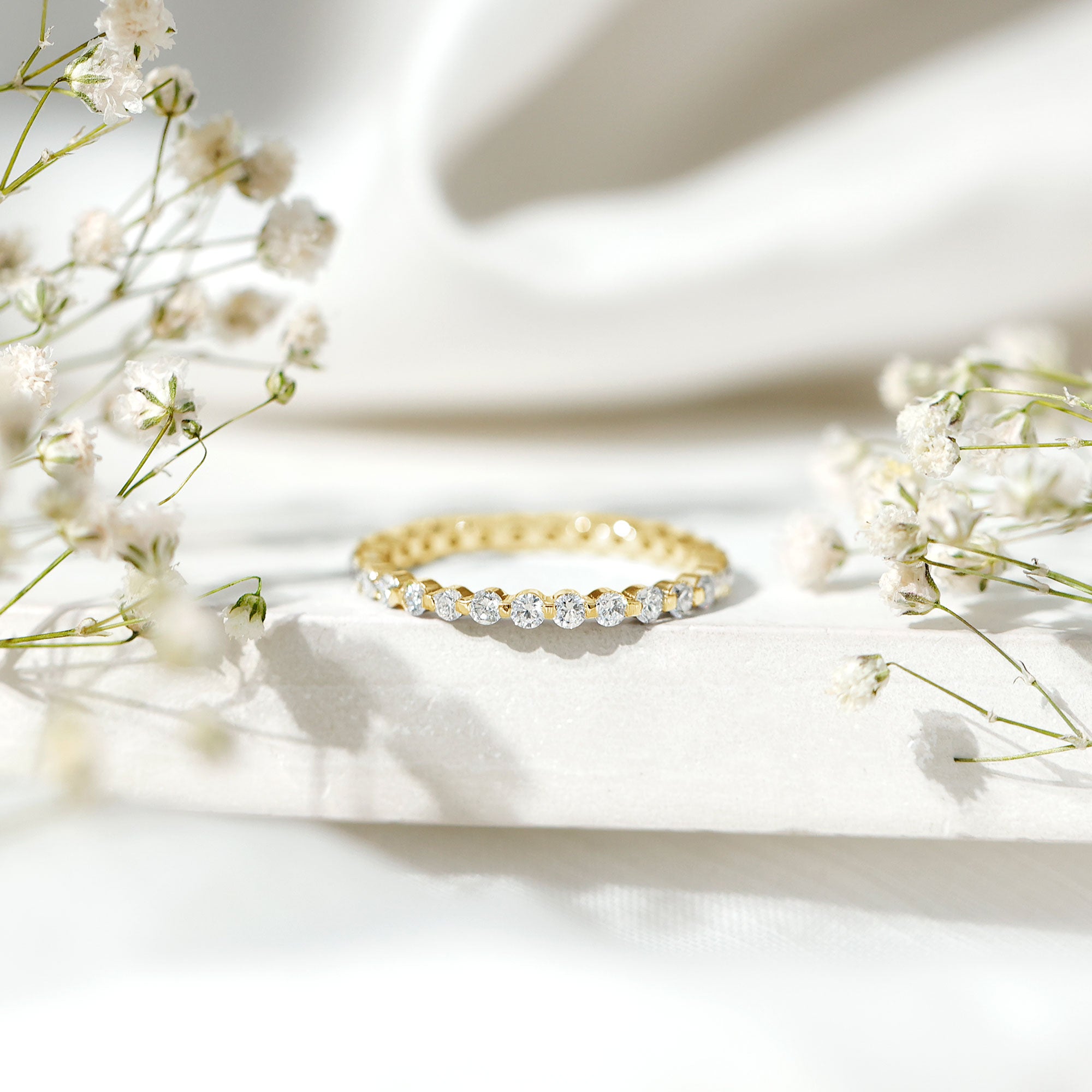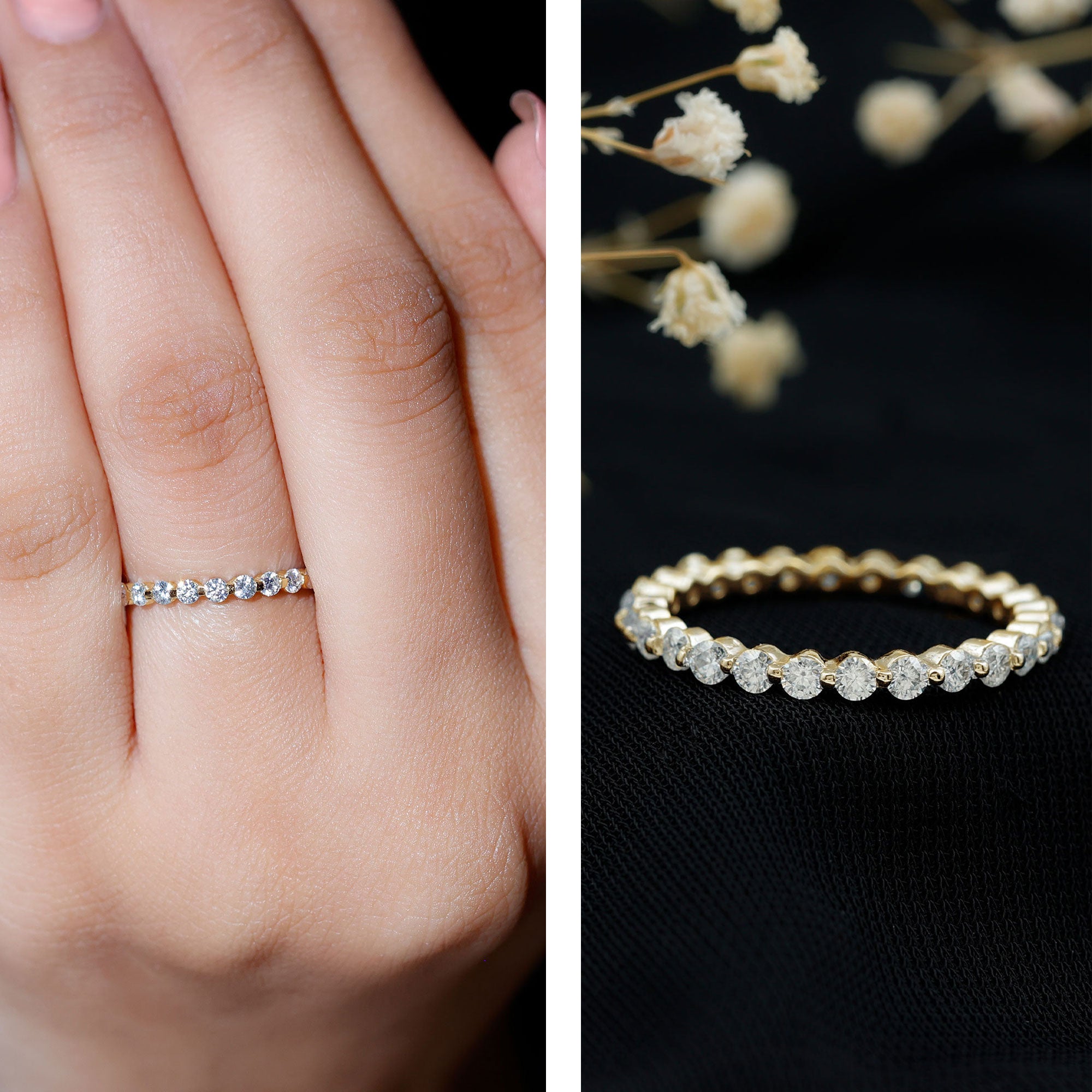This Lab Grown Diamond Eternity Ring features an endless loop symbolizing eternity and everlasting love. It is a stunning tribute to forever, designed as a Full Eternity Band, where each facet conveys commitment and grace. Crafted in a floating style, this piece enhances the classic round eternity design with a bold, contemporary flair. Each 2 MM Round Shape Lab Grown Diamond, with EF-VS Quality, rivals the shine of natural gems, making this Wedding Anniversary Ring a captivating piece that will always attract attention. The continuous flow of stones represents unbroken vows and the beauty of eternal love. Perfect for anniversaries, meaningful occasions, or simply celebrating the daily magic of togetherness, this Stackable Band Ring is more than just jewelry; it tells a story wrapped in sparkle. The brilliance shines endlessly, reflecting light and catching eyes with every movement, making this Diamond Wedding Band a striking statement, whether stacked or worn alone.