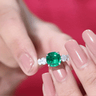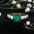 Lab Grown Emerald 8 MM Cushion Engagement Ring with Moissanite Side Stones